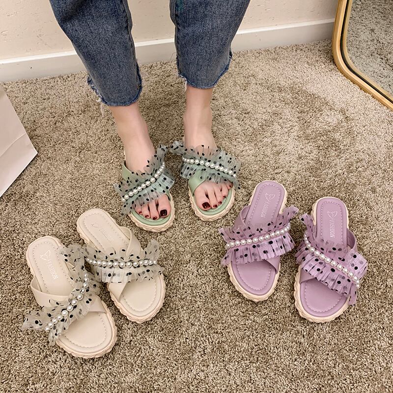 ミュールサマーパールメッシュクロスベルト サンダル 靴 シューズ 夏物 ハーネス 真珠 部族の婦人靴31243494687
