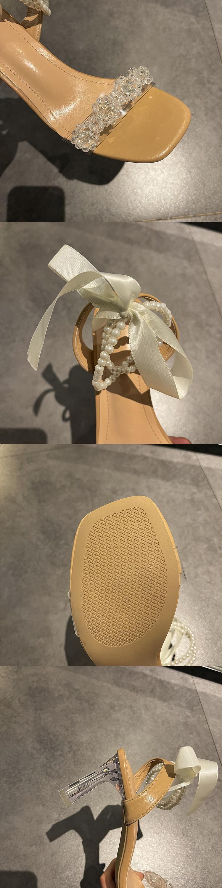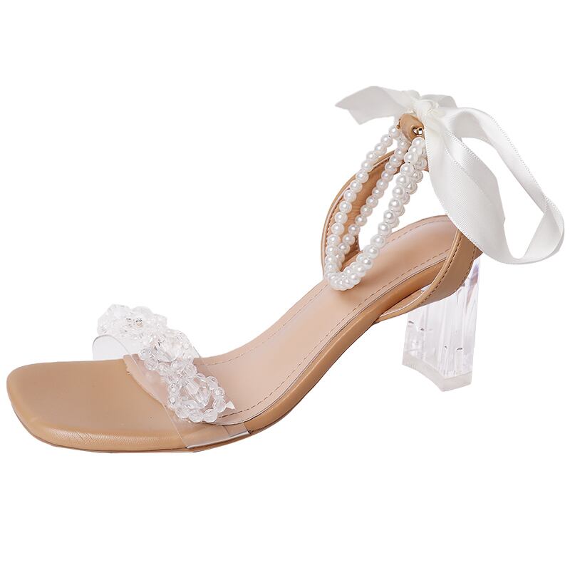 サンダルサマーパールスタイルヒール ハイヒール 靴 シューズ 夏物 真珠 部族の婦人靴32945696783