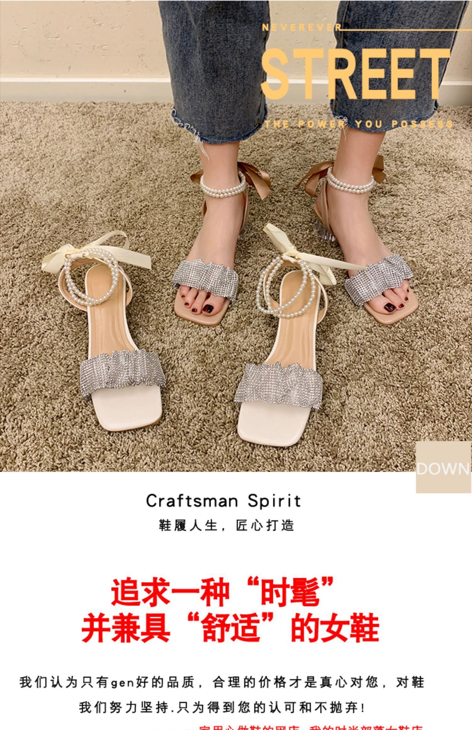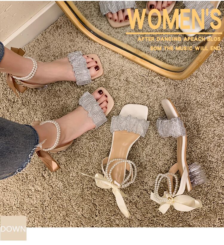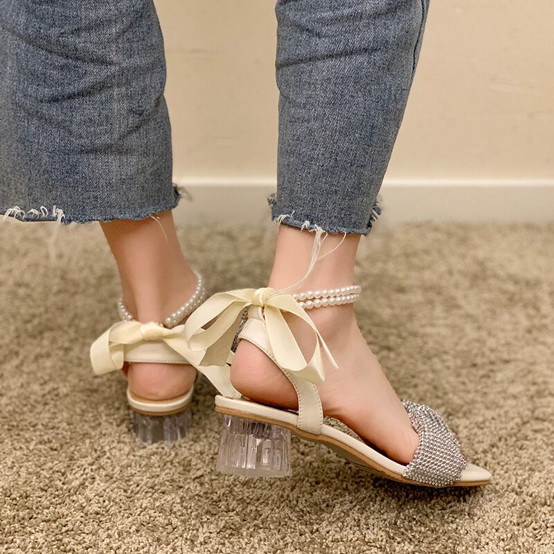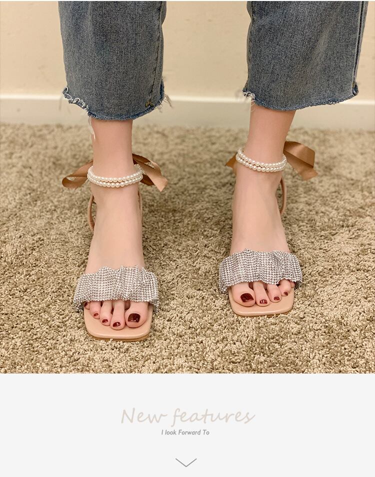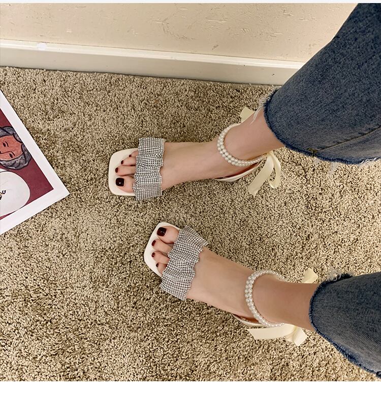 サンダルサマーラインストーンパールクリスタルスタイル 靴 シューズ 夏物 真珠 スクウェア 部族の婦人靴6203501198