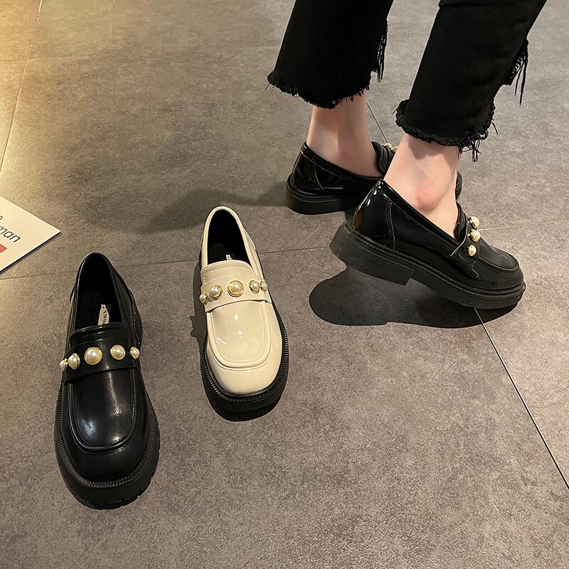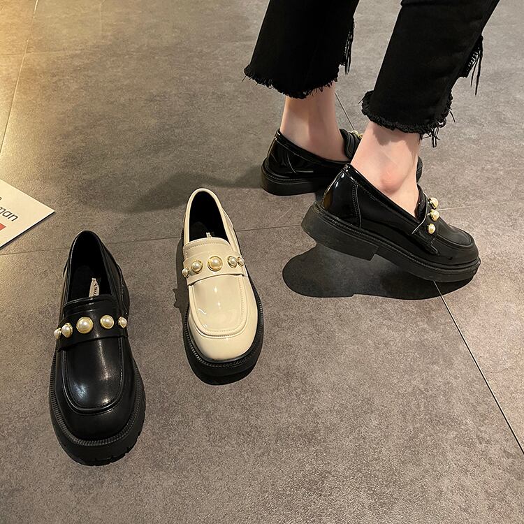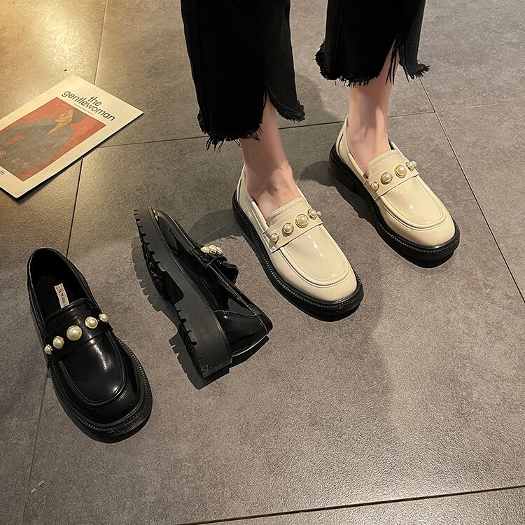 レザーサマーレッドパールスタンダード 靴 シューズ レトロ ローファー 夏物 真珠 部族の婦人靴64171671906