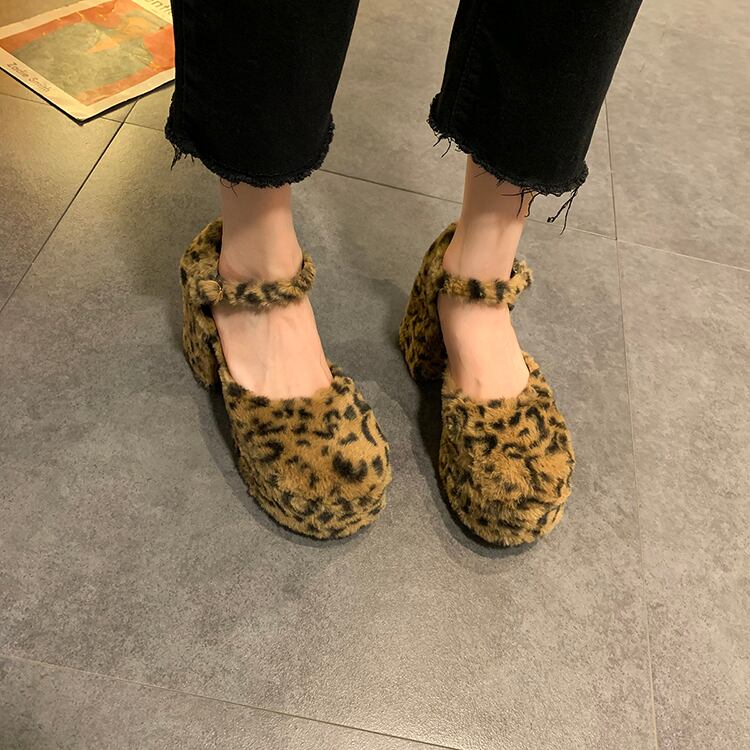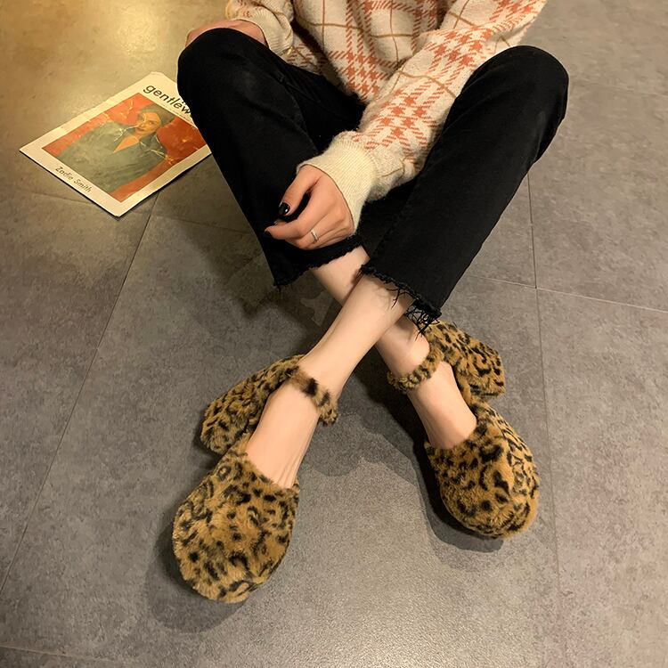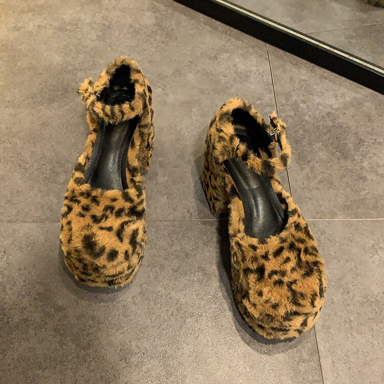 オータムウィンターレッドレオパードプリント柄バックル 靴 シューズ 秋物 冬物 防水 部族の婦人靴76214093685