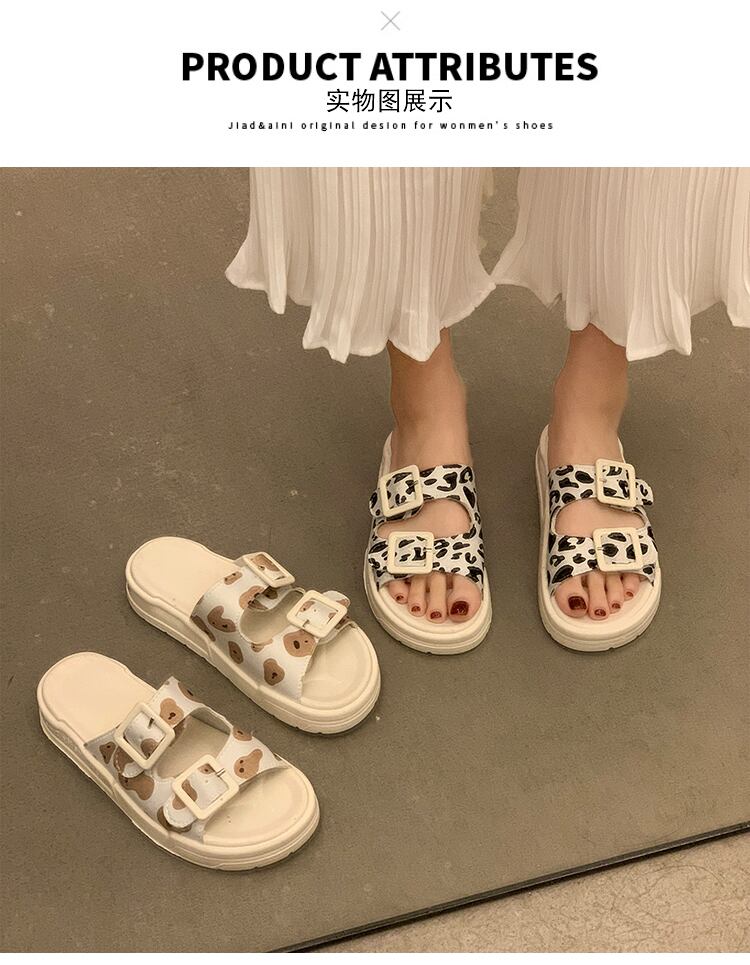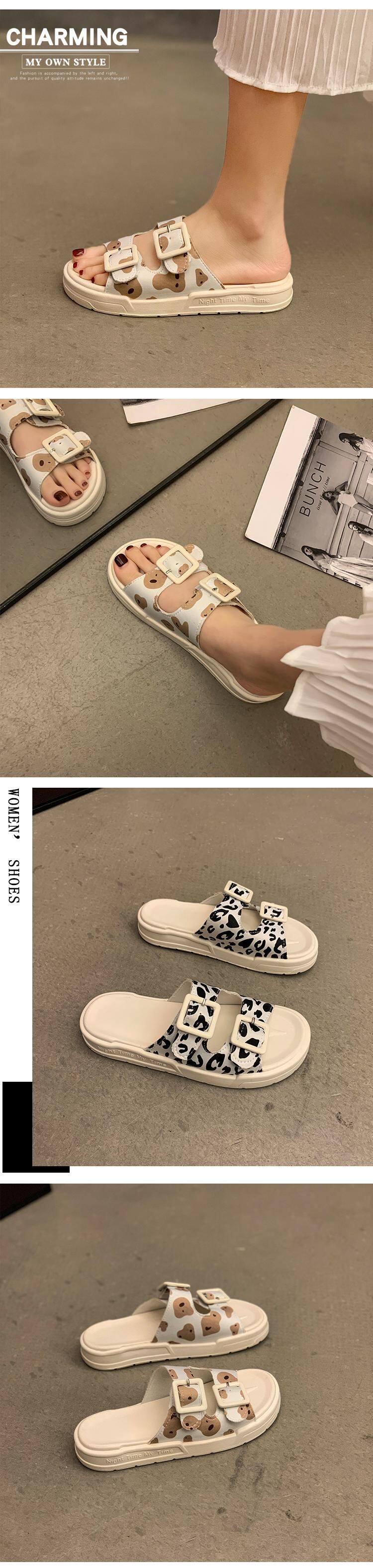 サンダルミュールサマーレッドレオパードプリント柄 靴 シューズ 夏物 部族の婦人靴58387902399