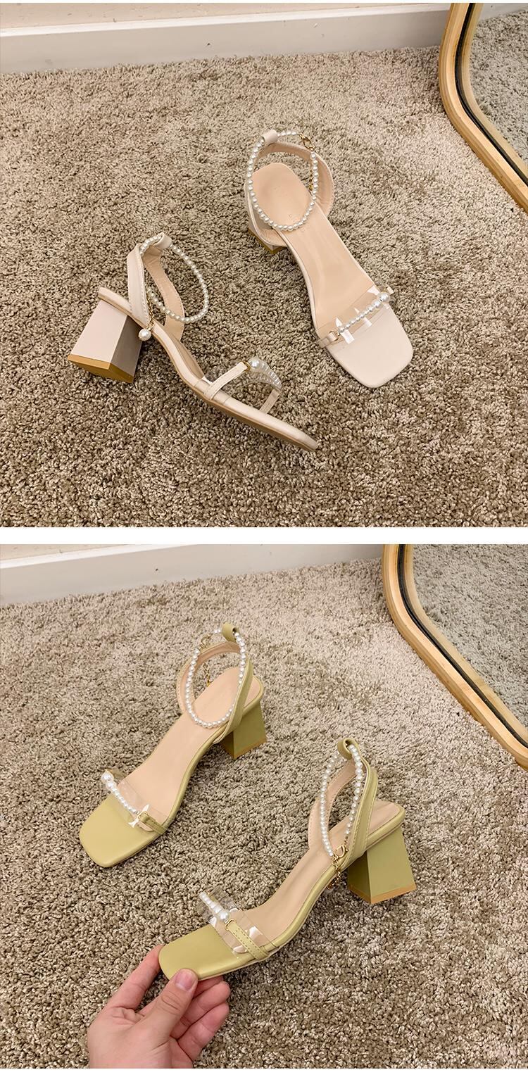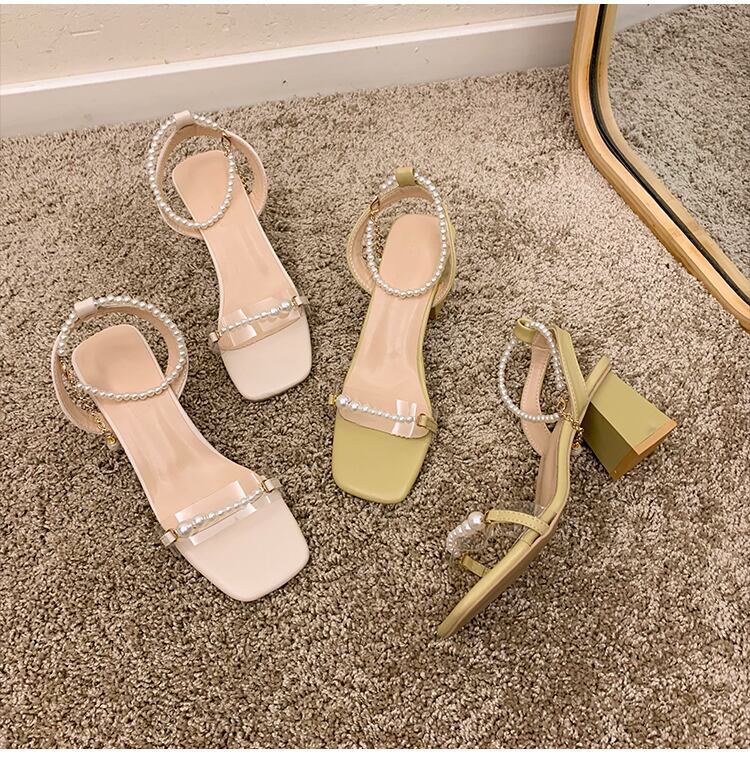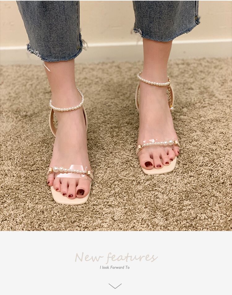 サンダルサマーレッドパールスタイルヒール ハイヒール 靴 シューズ 夏物 真珠 部族の婦人靴77184399340