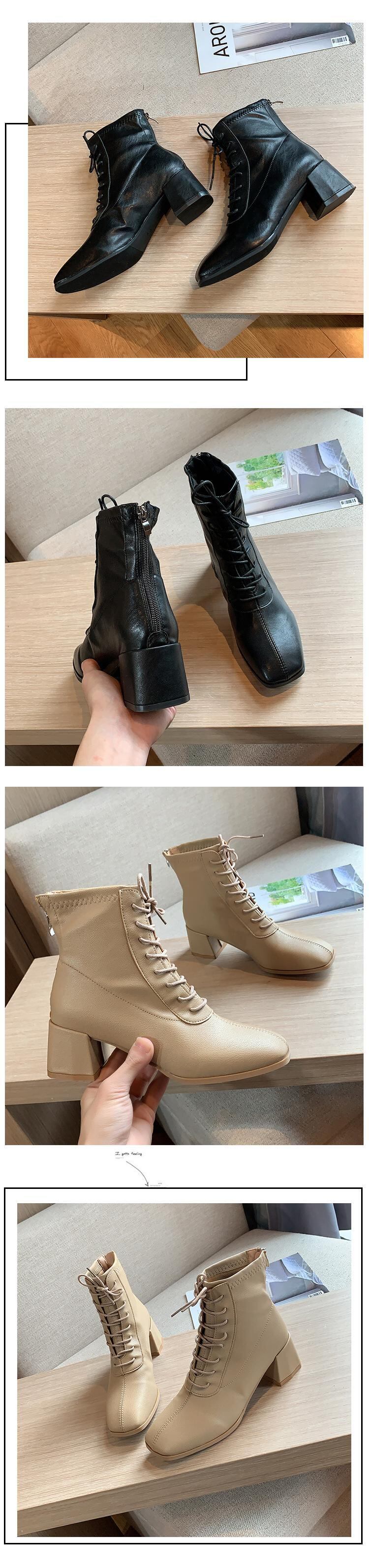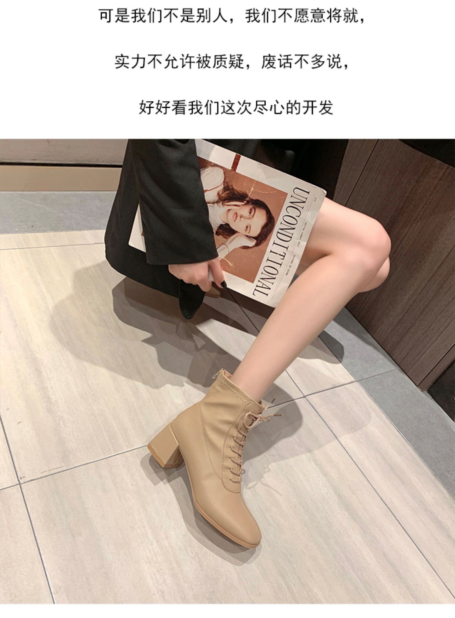 ブーツスタイルスプリングオータムシングルレッド薄手ヒールショート ハイヒール 靴 シューズ 春物 秋物 スクウェア 部族の婦人靴84327605681