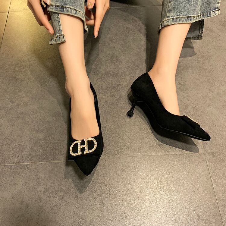 ヒールサマーラインストーンシングルブラック 靴 シューズ 夏物 部族の婦人靴70593203938