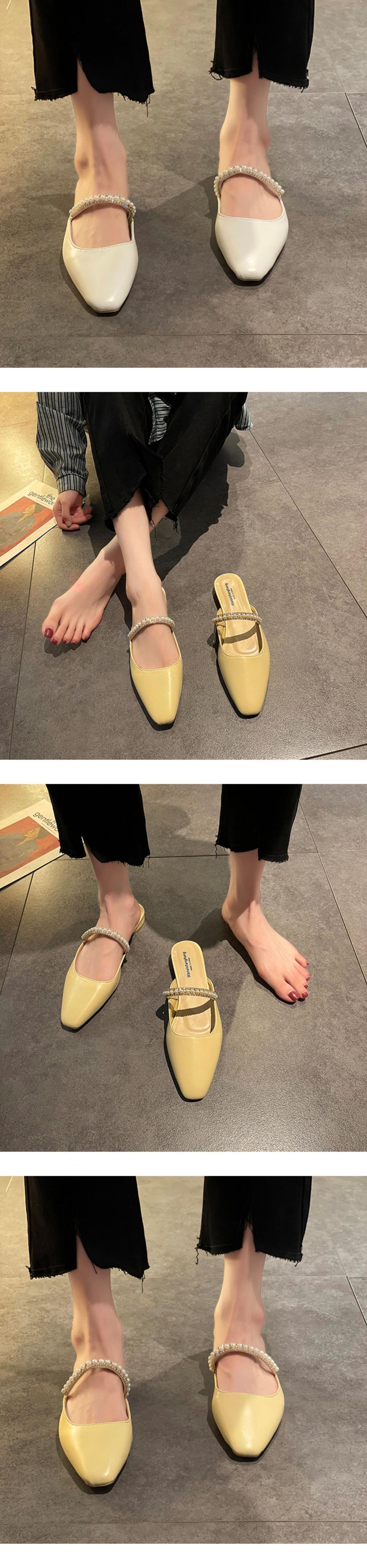 ミュールサマーパールラインストーンサンダル 靴 シューズ 夏物 真珠 部族の婦人靴77043401532
