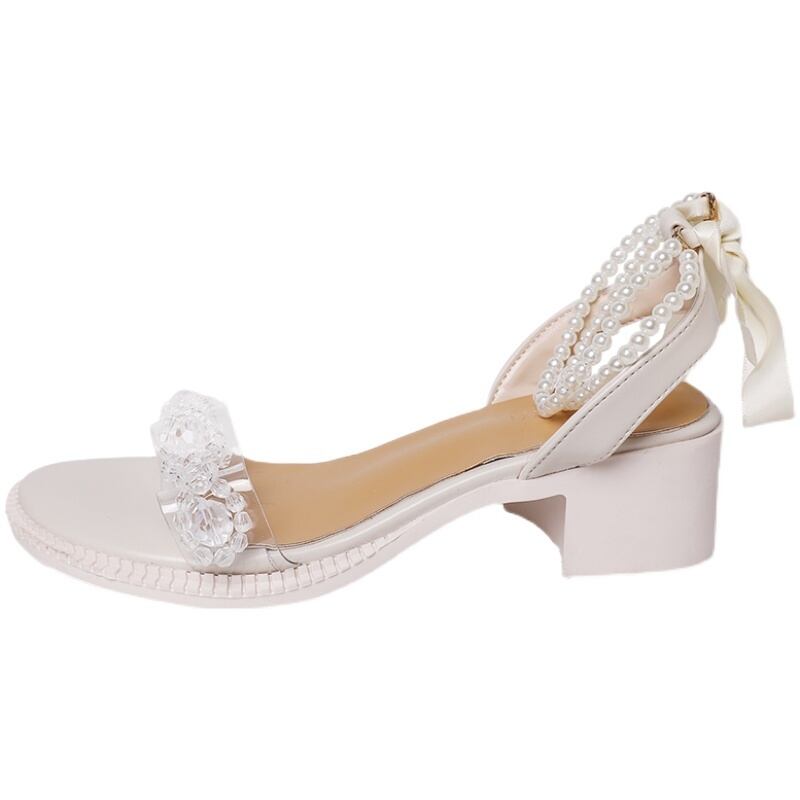 サンダルサマーレッドスタイルパールヒール ハイヒール 靴 シューズ 夏物 真珠 部族の婦人靴43960055690