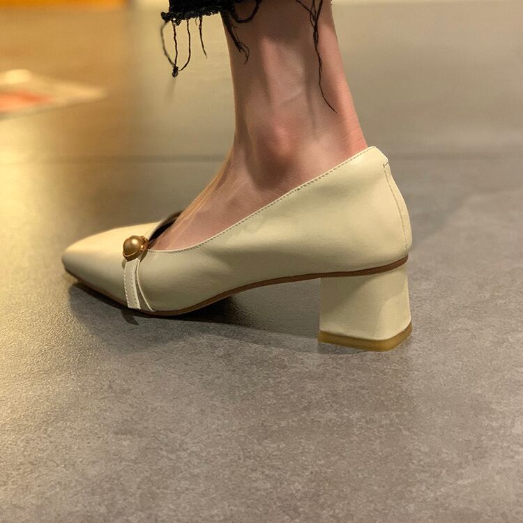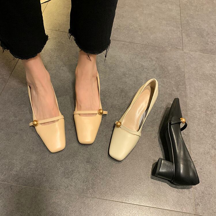 ヒールオータムスタイルカジュアルレザーシングル 靴 シューズ ハイヒール 秋物 スクウェア 部族の婦人靴71185621229