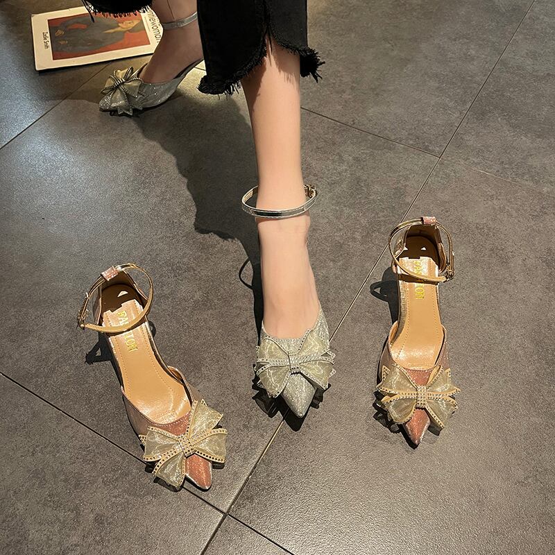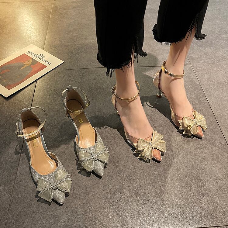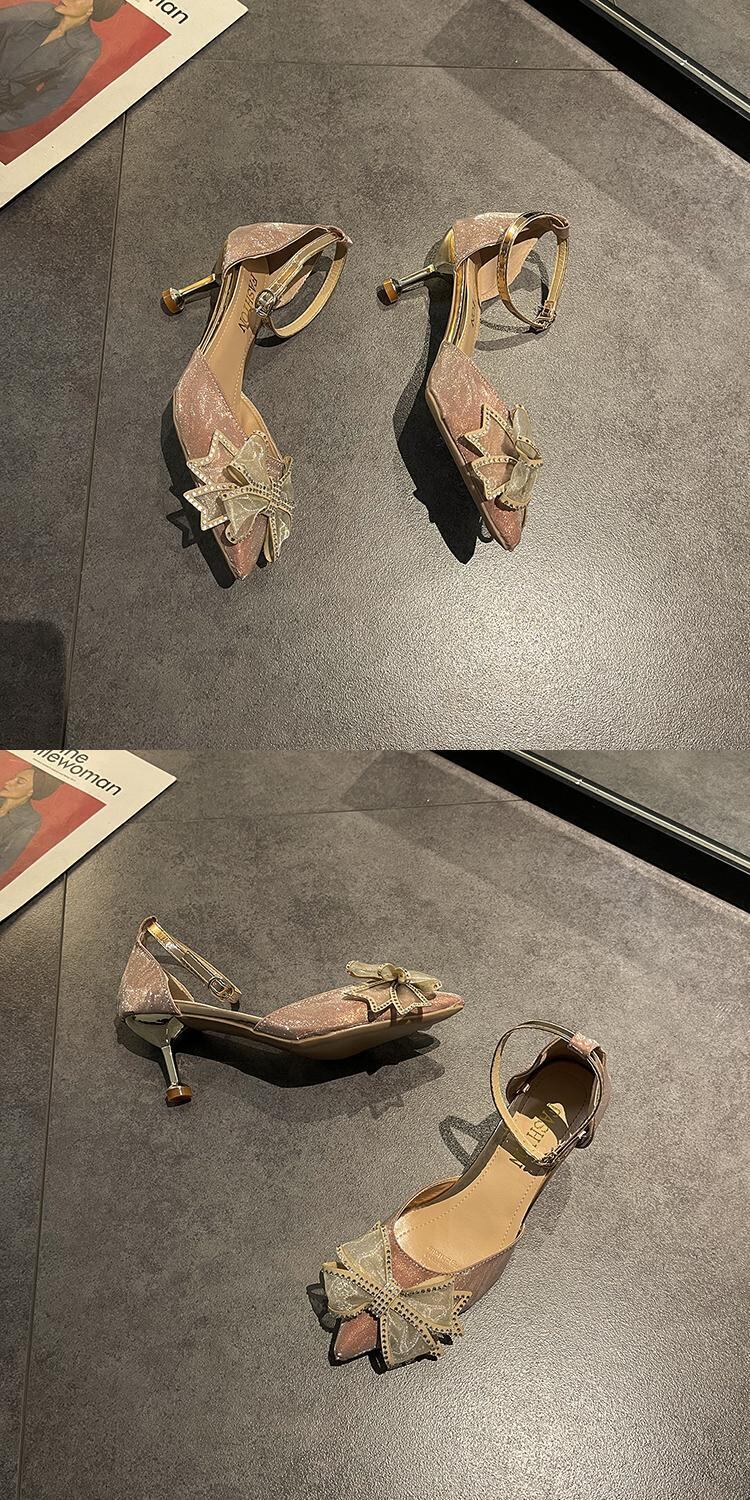 サンダルサマーレッドラインストーンリボンヒール ハイヒール 靴 シューズ 夏物 部族の婦人靴24860227024