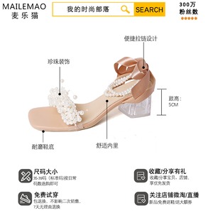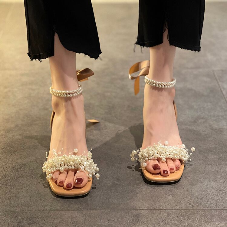 サンダルサマーレッドスタイルクリスタルパールヒール 靴 シューズ 夏物 真珠 スクウェア 部族の婦人靴96177210145