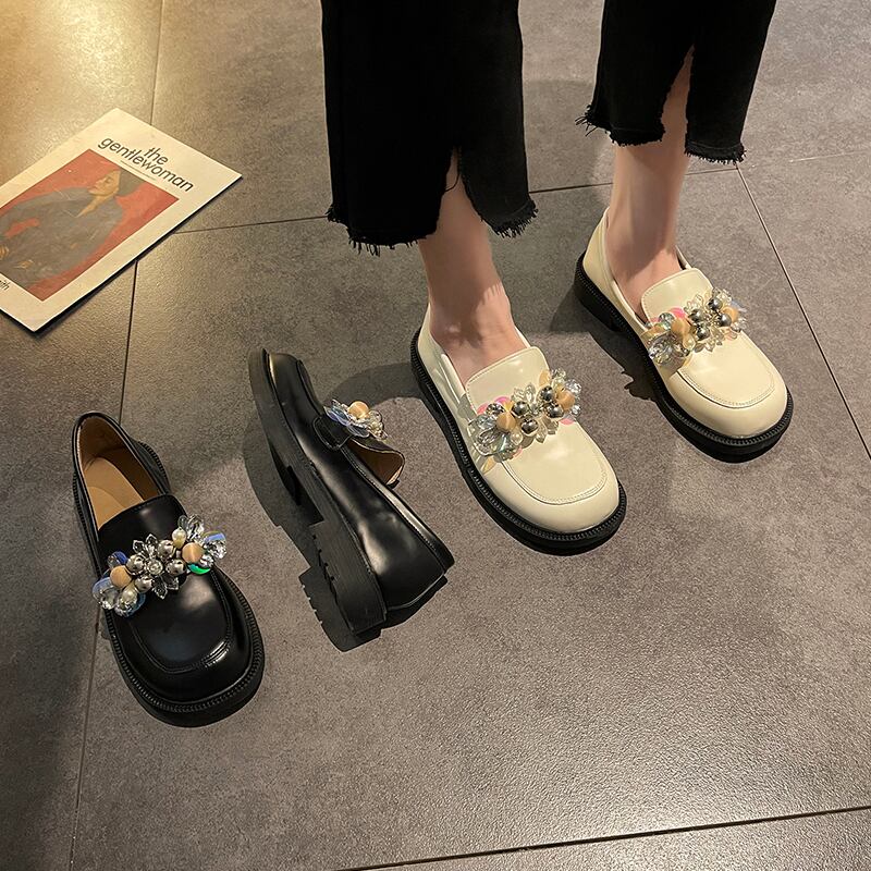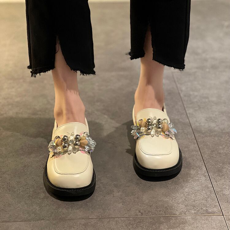 レザーレディースサマーレッドラインストーン 靴 シューズ ローファー 夏物 フラワーデザイン スクウェア 部族の婦人靴59070648024