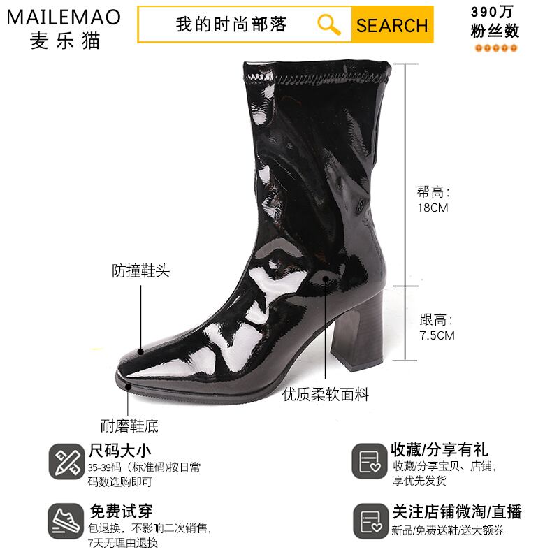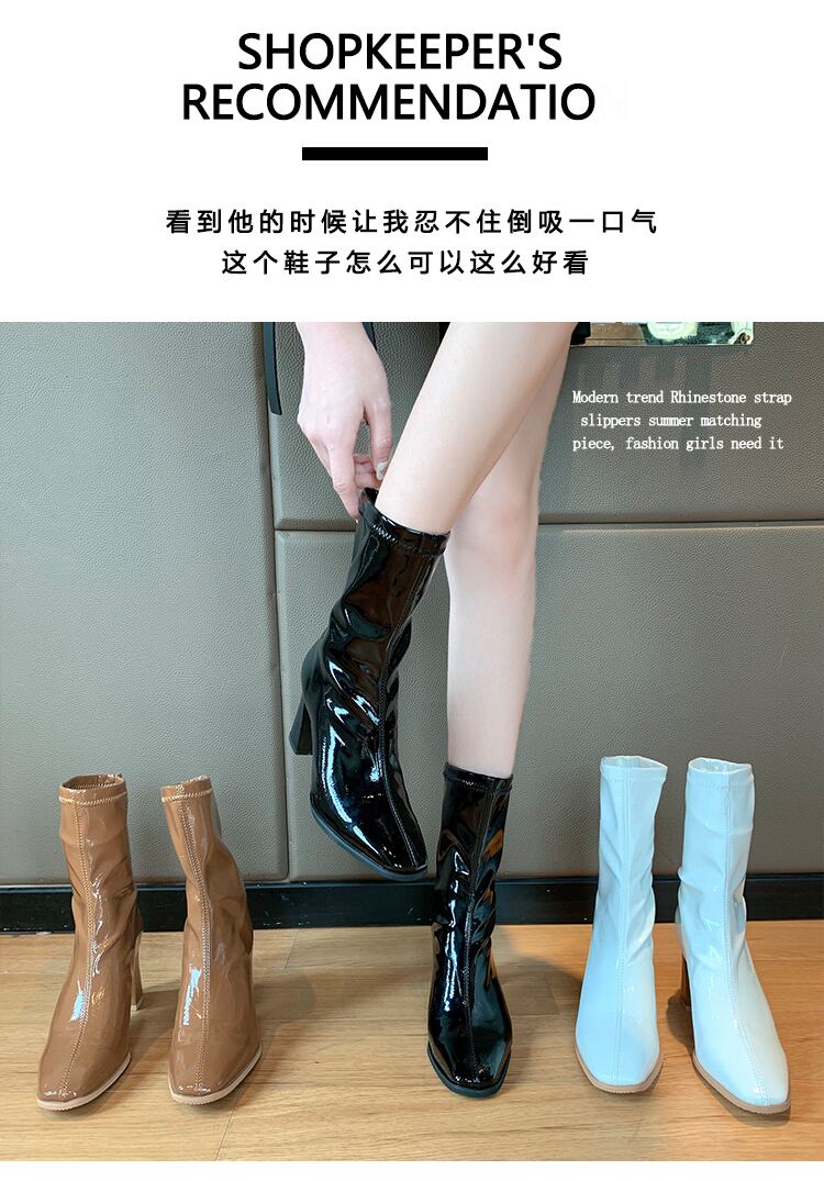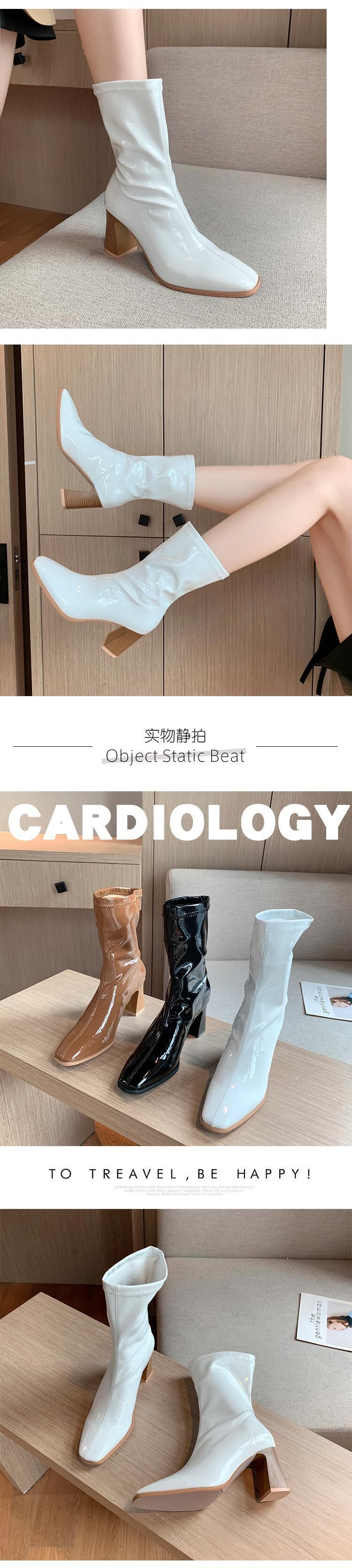 ショートブーツオータムスタイルレッド薄手スキニーハイヒールレザーブラック 靴 シューズ 秋物 部族の婦人靴16824651478