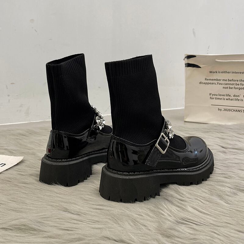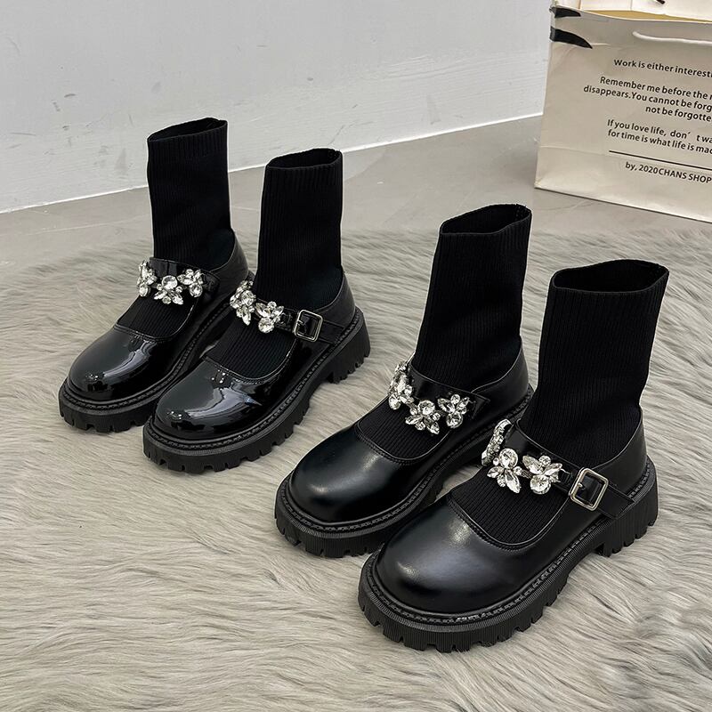ブーツオータムスタンダードレザーラインストーンショート薄手ストレッチソックス レトロ 靴 シューズ エラスティック 伸縮 秋物 タイツ ストッキング 部族の婦人靴47146283384