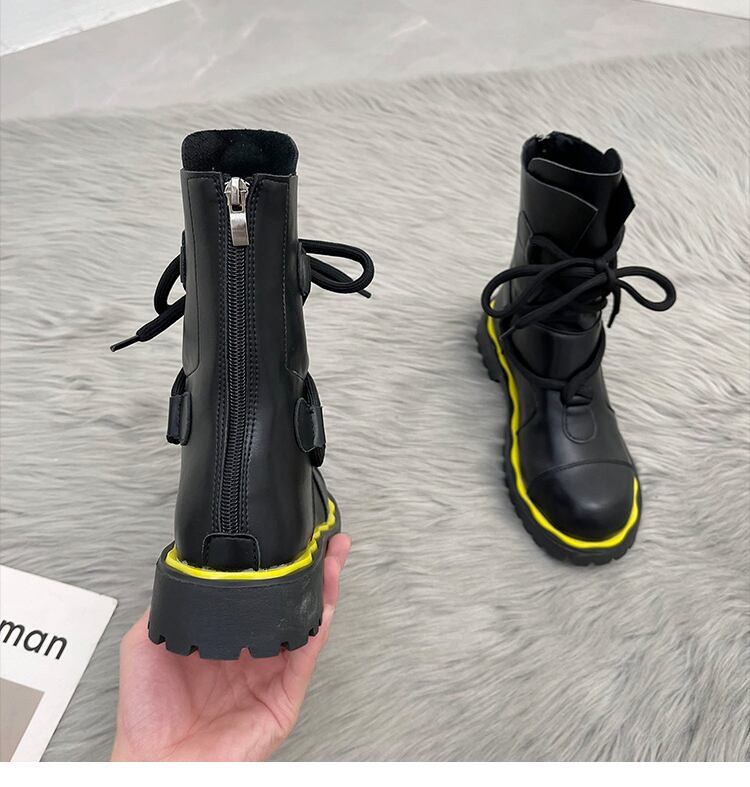 ブーツスプリングオータムスタイルブラック 靴 シューズ 春物 秋物 ラウンドトー 部族の婦人靴33384030997
