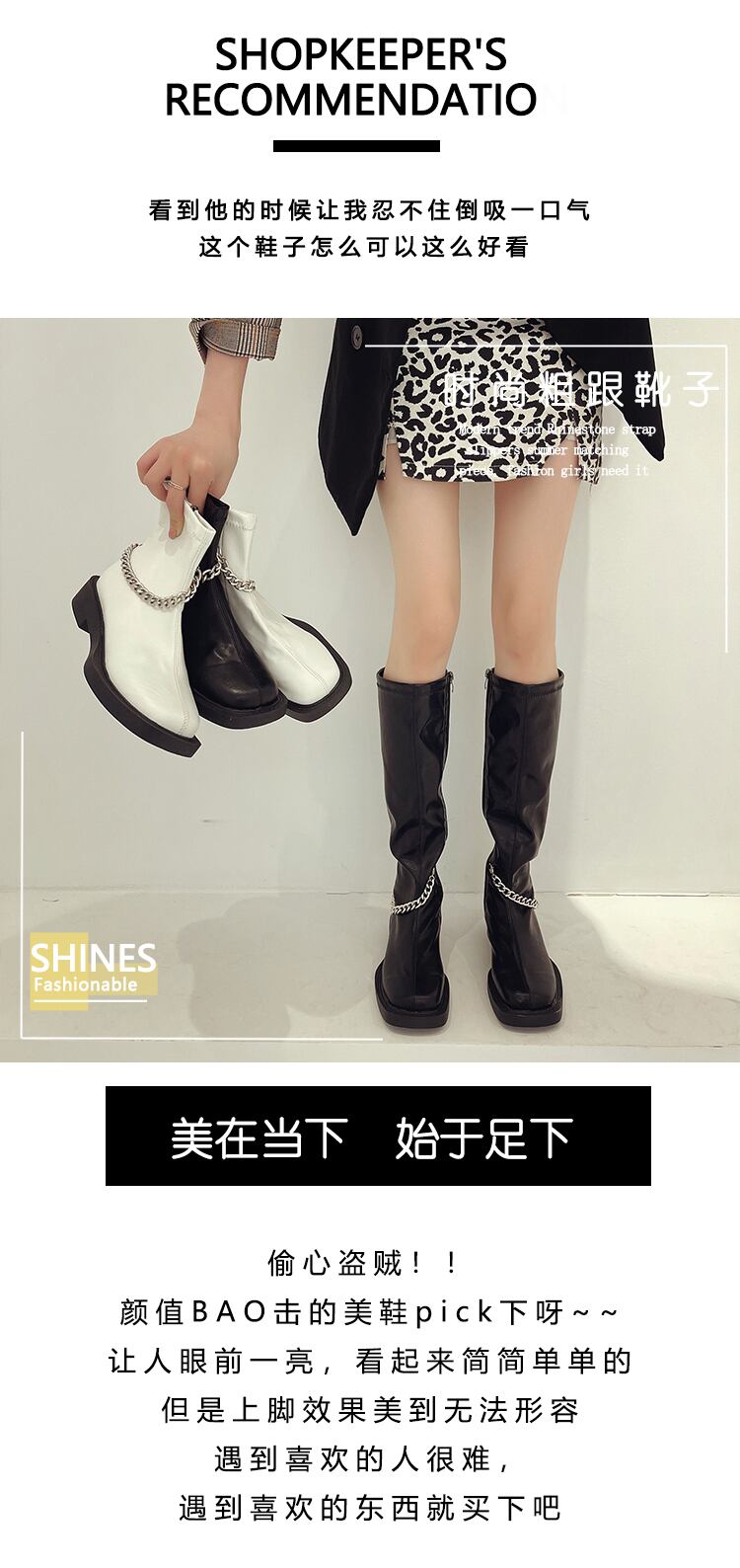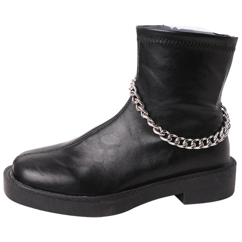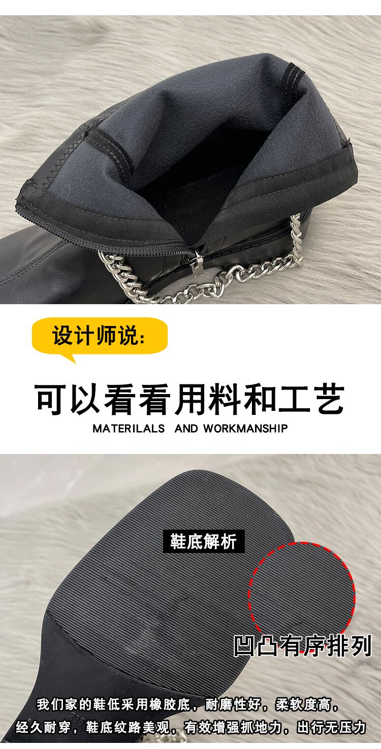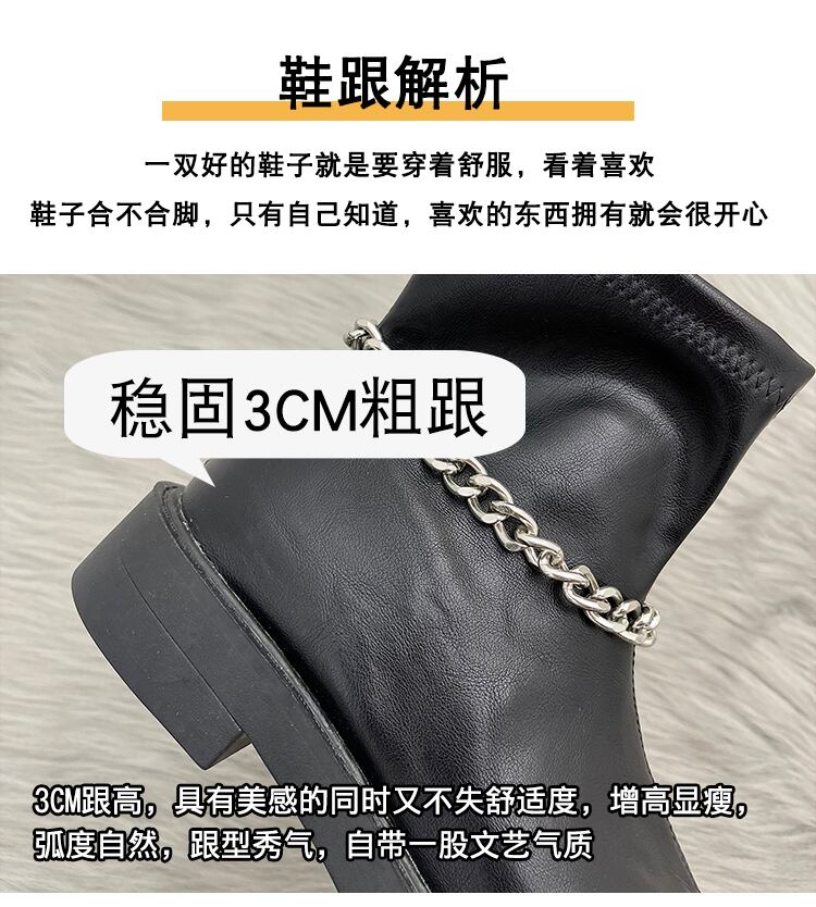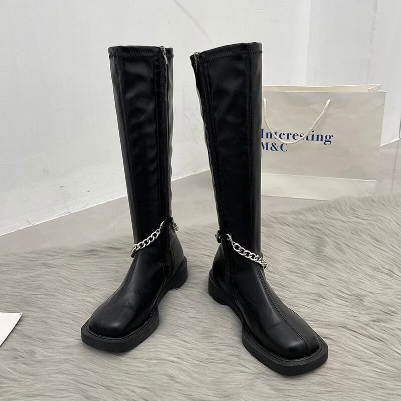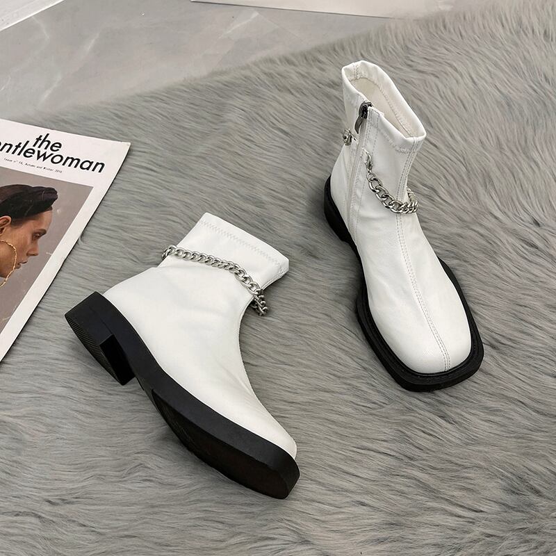 ホワイトチェーン ロングブーツスプリングオータムショート 靴 シューズ 春物 秋物 スクウェア 部族の婦人靴81697420466