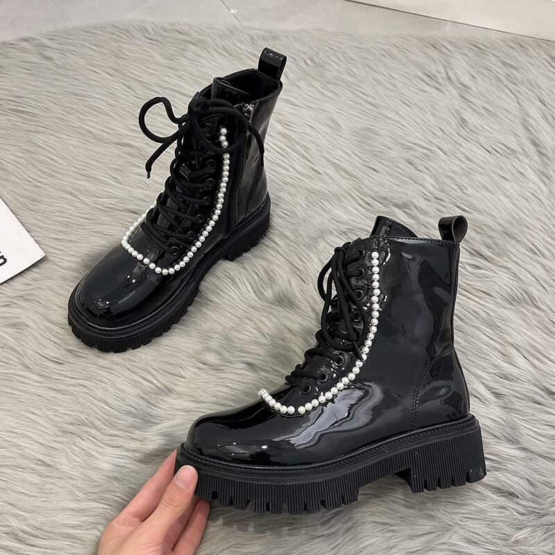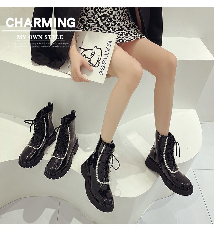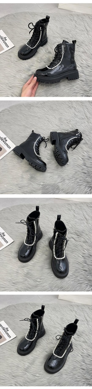 ショートブーツサマーパールスタイルスタンダードブラック レトロ レース 靴 シューズ 夏物 レースアップ 真珠 部族の婦人靴33898398428