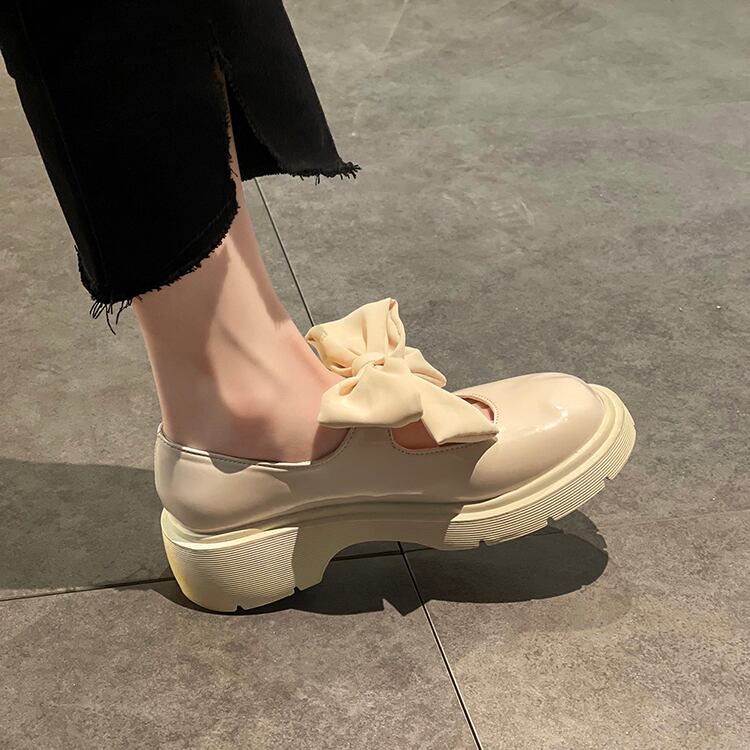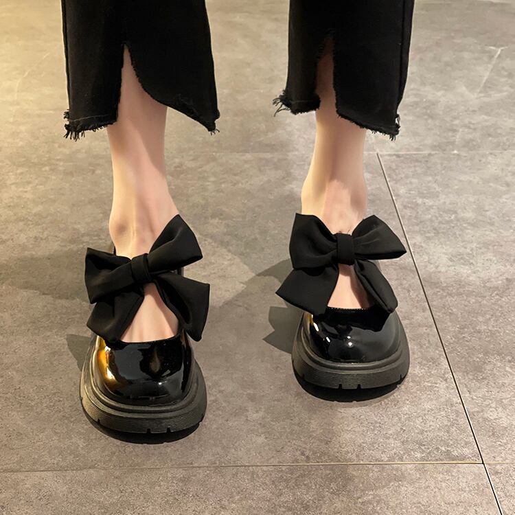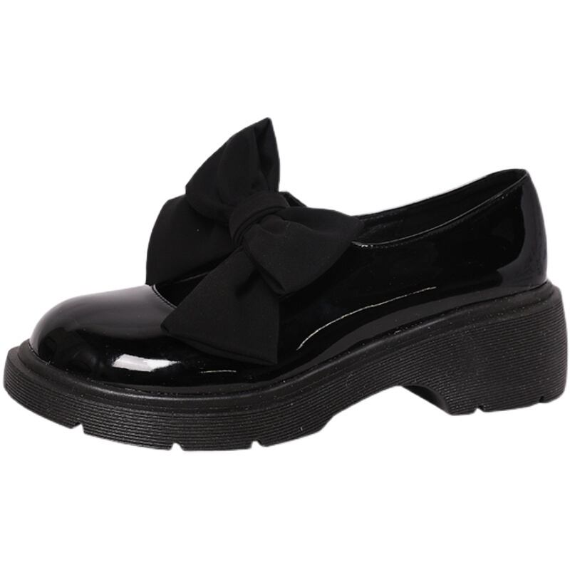 シングルスプリングオータムスタンダードブラックレザー 靴 シューズ リボン レトロ レース 春物 秋物 レースアップ 部族の婦人靴3949432082