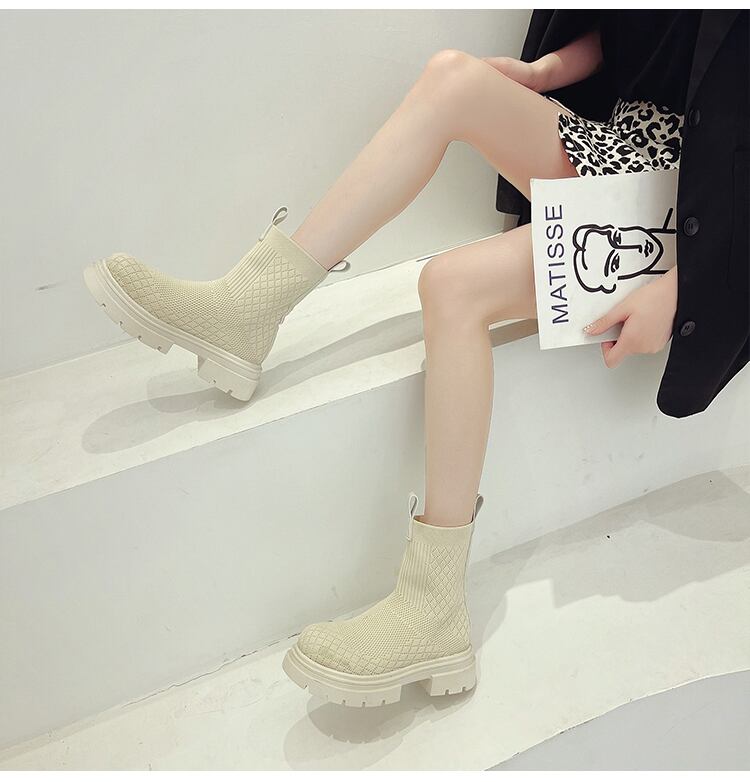 ストレッチ薄手ブーツレディースレッドシングルショート 靴 シューズ エラスティック 伸縮 部族の婦人靴72728324143