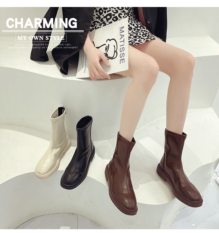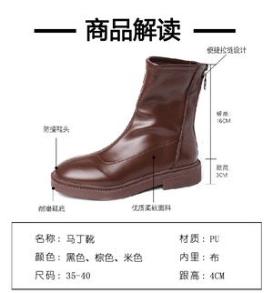ブーツスプリングオータムブラウン薄手スタイルジッパーアンクル 靴 シューズ 春物 秋物 部族の婦人靴83948074109