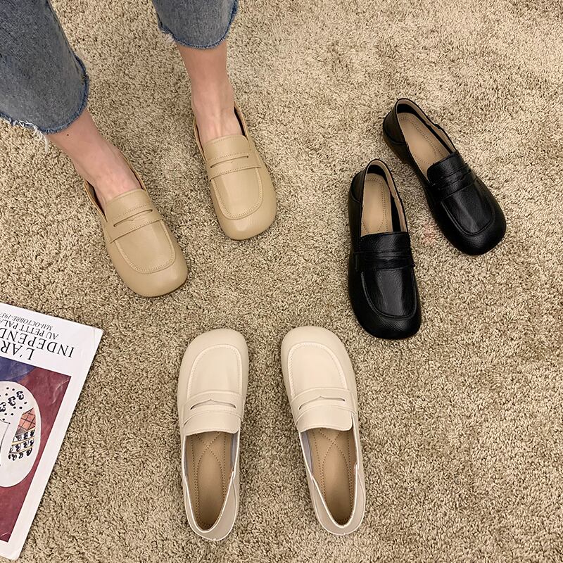 レザーレディーススプリングオータムレッドセット シングル 靴 シューズ ローファー 春物 秋物 部族の婦人靴38236301122