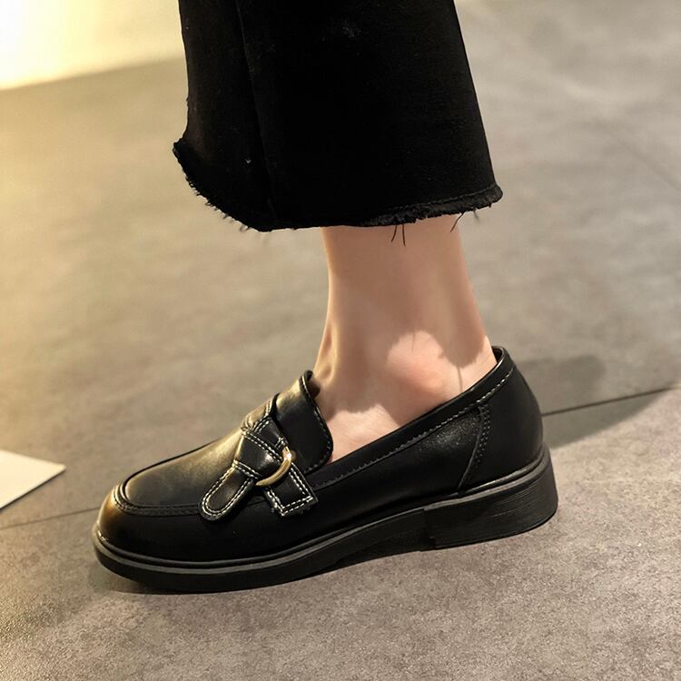 ブラックキャップ レザーサマーシングル 靴 シューズ ローファー 夏物 ラウンドトー 部族の婦人靴39253474462