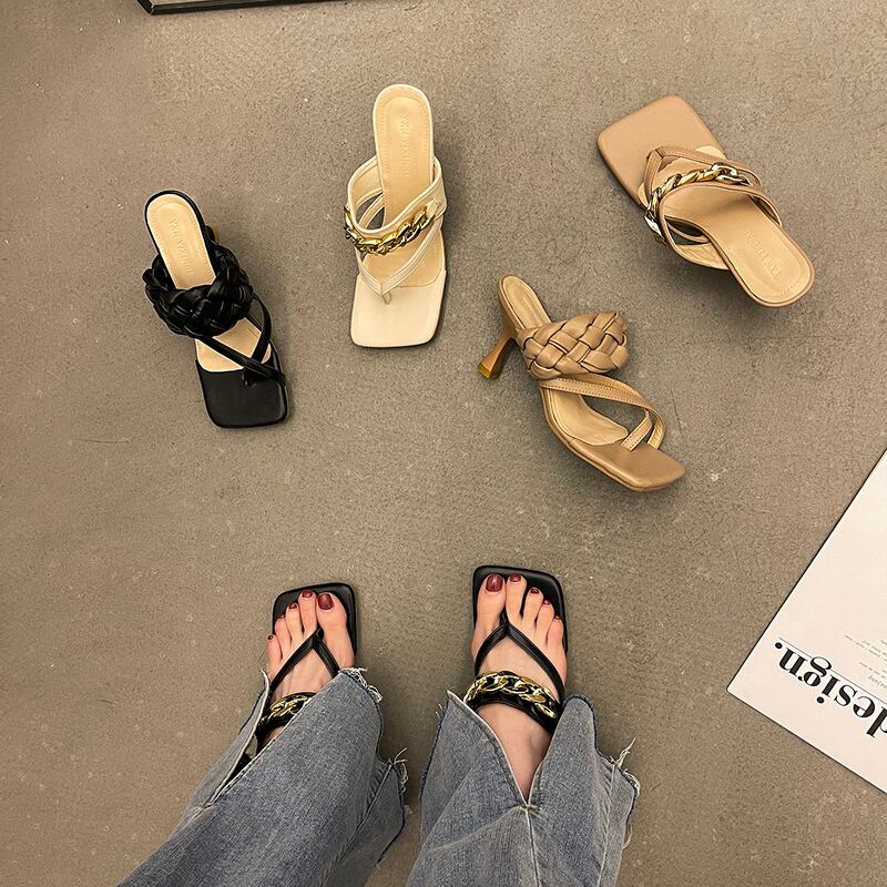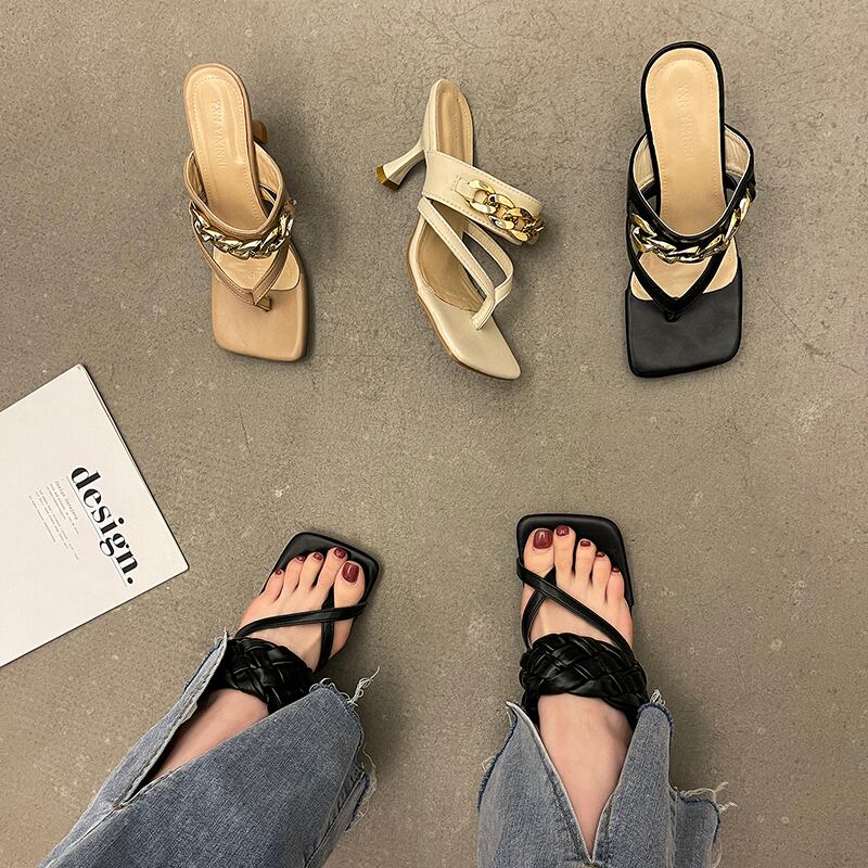 ミュールサマーメタルチェーン スタイルハイヒールサンダル 靴 シューズ 夏物 部族の婦人靴89334607822