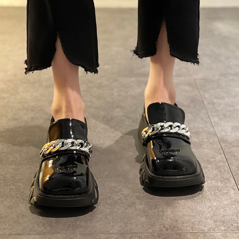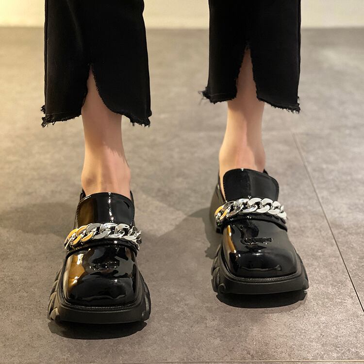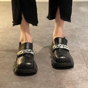 スタンダードオータムメタルチェーン レザー 靴 シューズ レトロ 秋物 スクウェア 部族の婦人靴57629118612