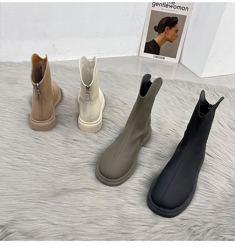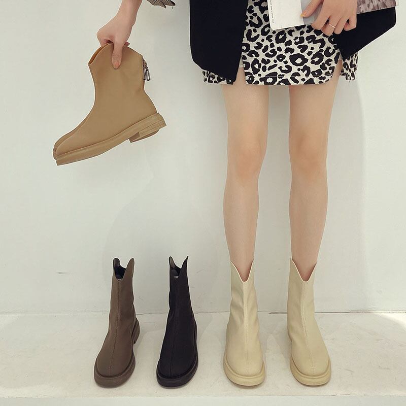 ホワイトショートブーツスタイルオータムレッドバックジッパー薄手 靴 シューズ 秋物 部族の婦人靴95651132782