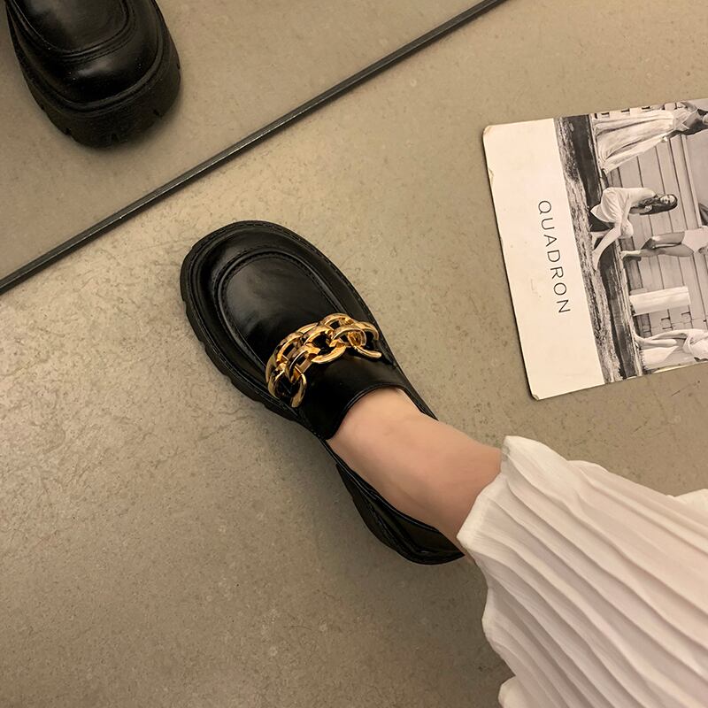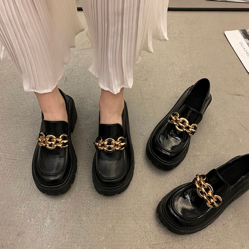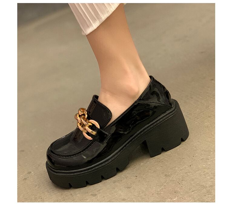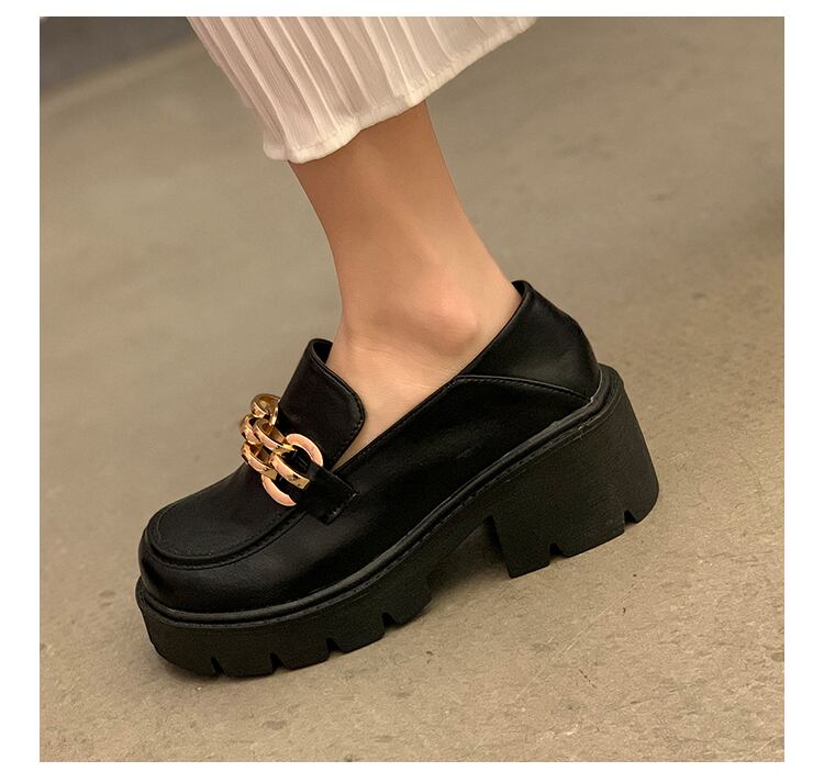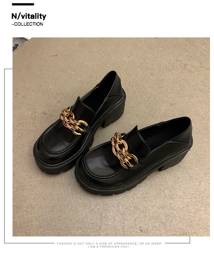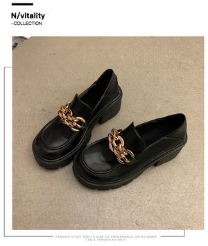 レザーサマー薄手チェーン スタンダードブラックハイヒールシングル 靴 シューズ レトロ 夏物 部族の婦人靴35682377070