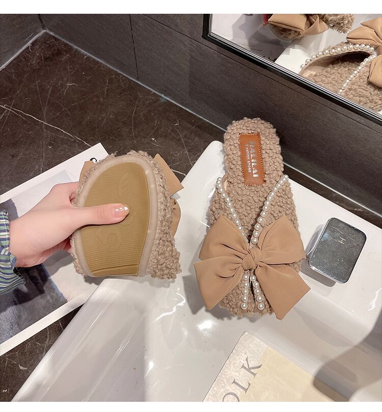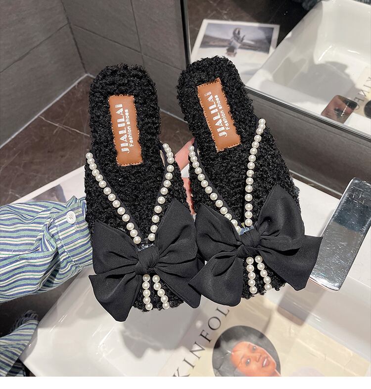 ミュールサマーレッドスタイルパールリボン 靴 シューズ 夏物 真珠 部族の婦人靴1248173235