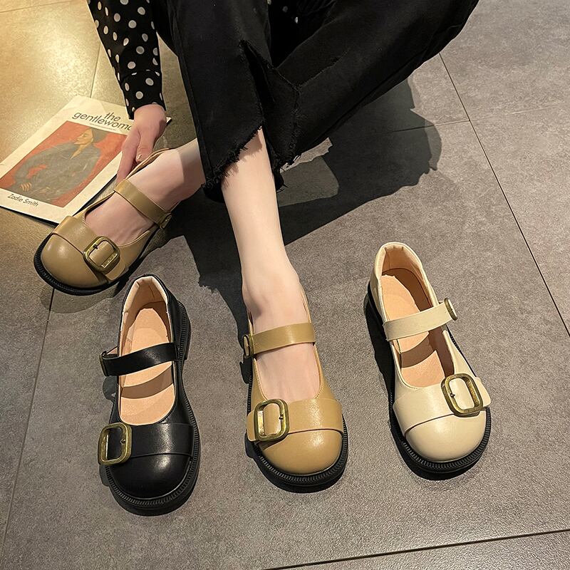 シングルサマースタイルブラックバックルレザー 靴 シューズ 夏物 部族の婦人靴15303132615
