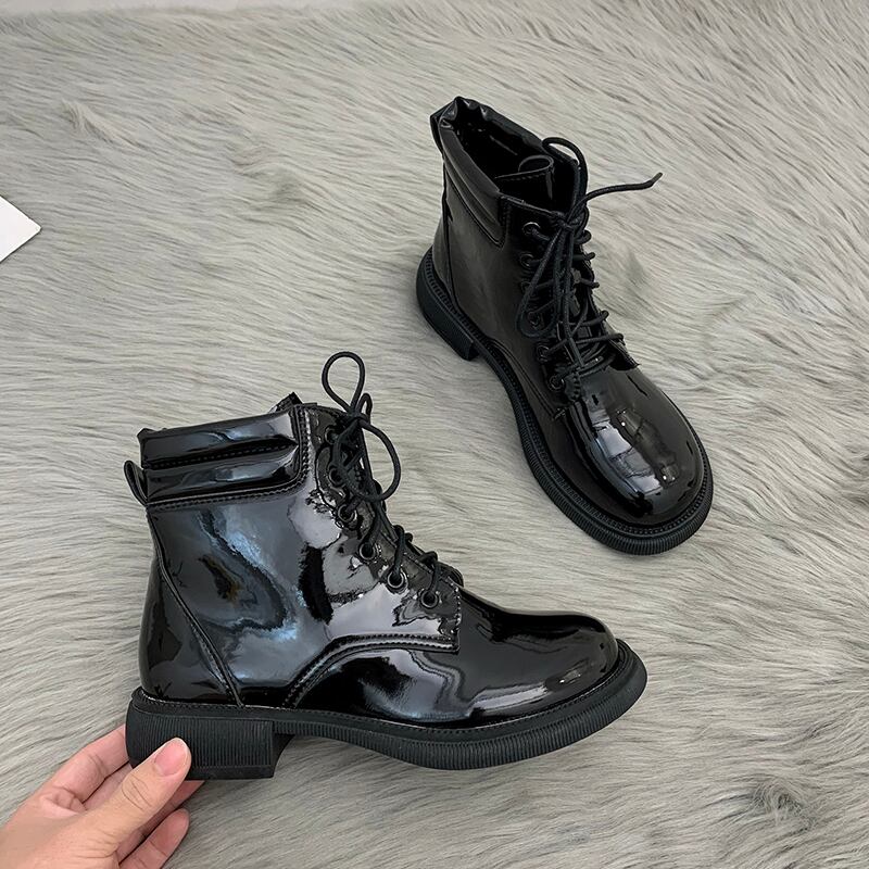 ブーツスタイルスプリングオータムレッドレザーブラックショート 靴 シューズ 春物 秋物 部族の婦人靴64839837127