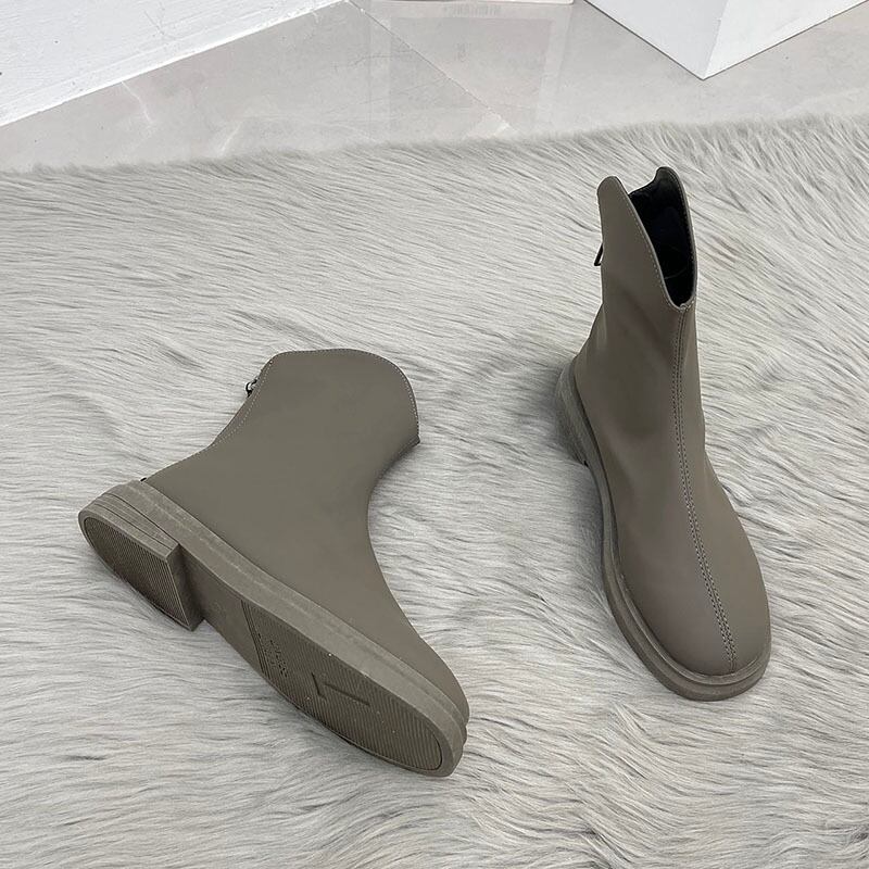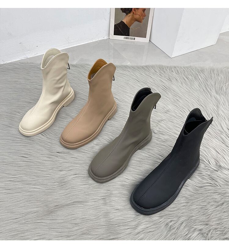 ホワイトショートブーツスタイルオータムレッドバックジッパー薄手 靴 シューズ 秋物 部族の婦人靴2958057367