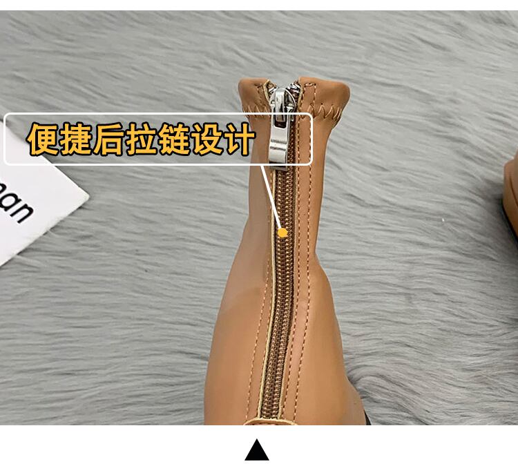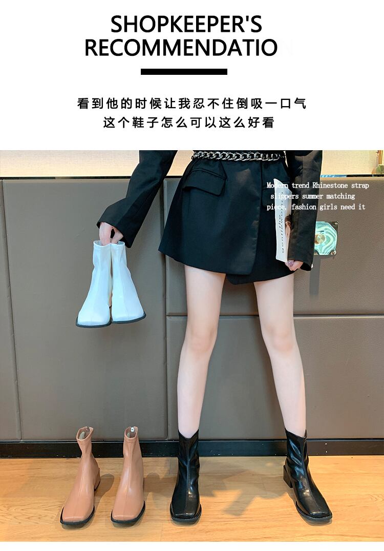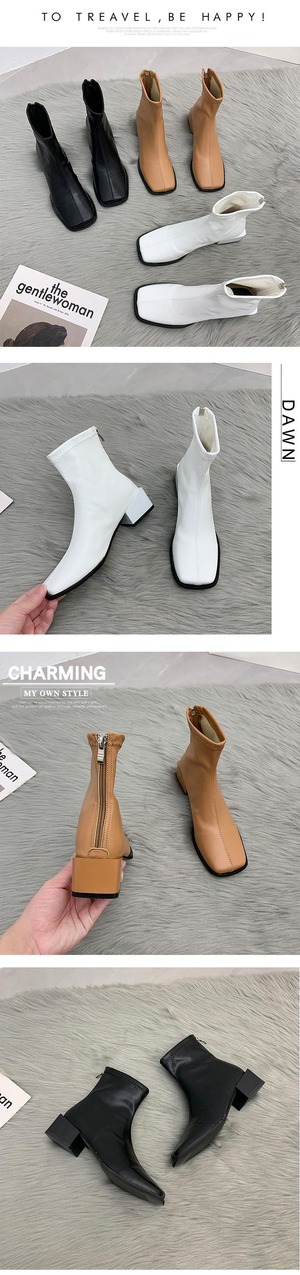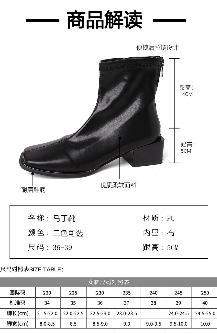 ショートブーツスプリングオータムバックジッパーブラックスリム薄手 靴 シューズ 春物 秋物 スクウェア 部族の婦人靴75507837739