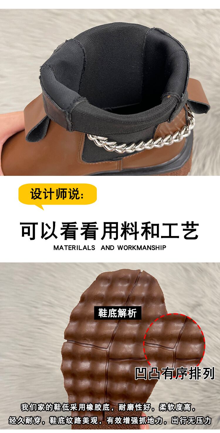 ショートブーツスプリングオータムレッドチェーン 靴 シューズ 春物 秋物 部族の婦人靴19601035237