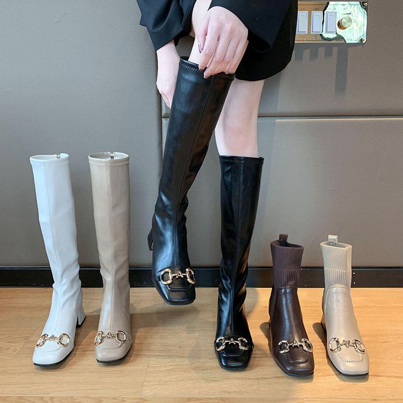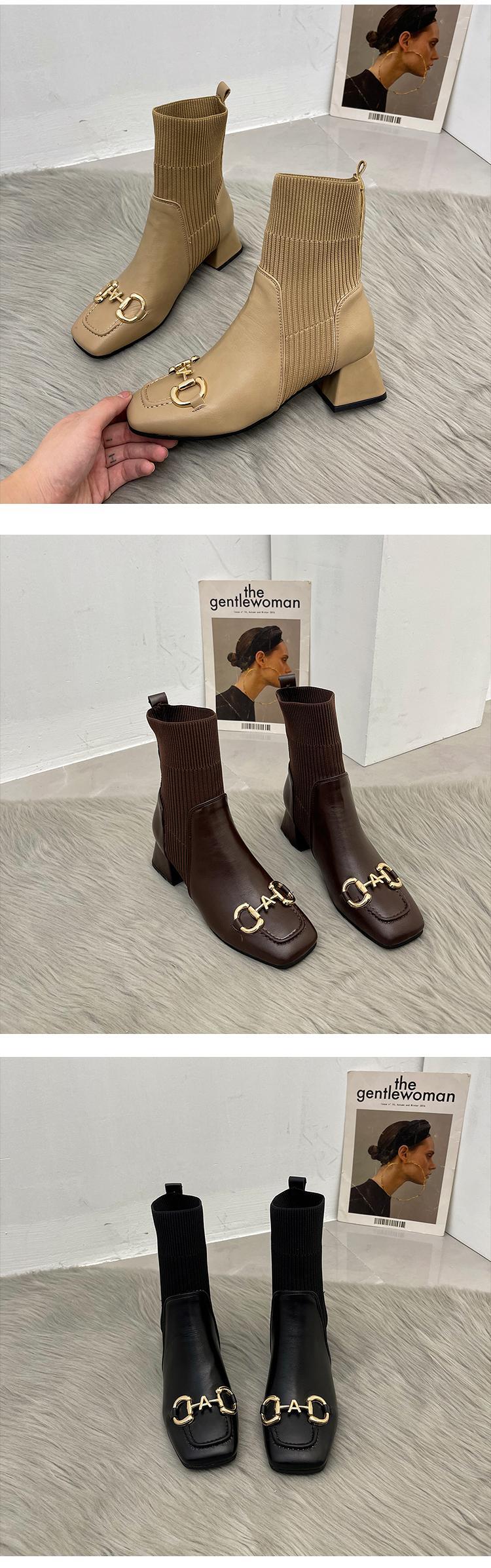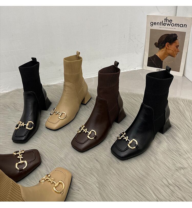 ショートブーツスプリングオータムレッドストレッチジッパー 靴 シューズ エラスティック 伸縮 春物 秋物 スクウェア 部族の婦人靴42422980076