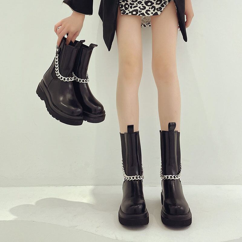ショートブーツスタイルスプリングオータムレッドチェーン スタンダード レトロ 靴 シューズ 春物 秋物 部族の婦人靴22797251605
