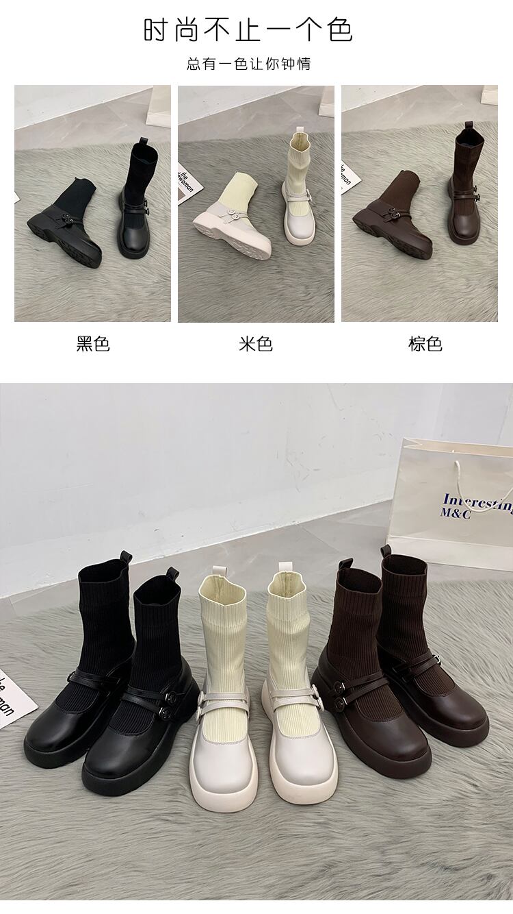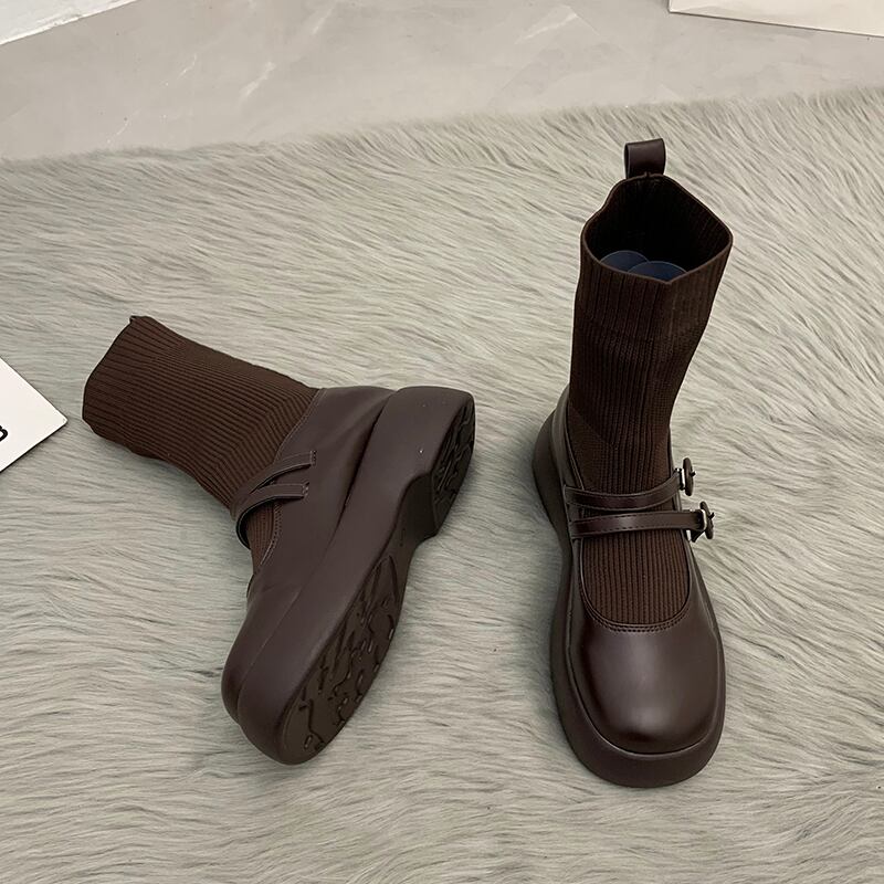 ブーツスプリングオータムレザーレッドショートソックス 靴 シューズ 春物 秋物 ラウンドトー タイツ ストッキング 部族の婦人靴66140182518