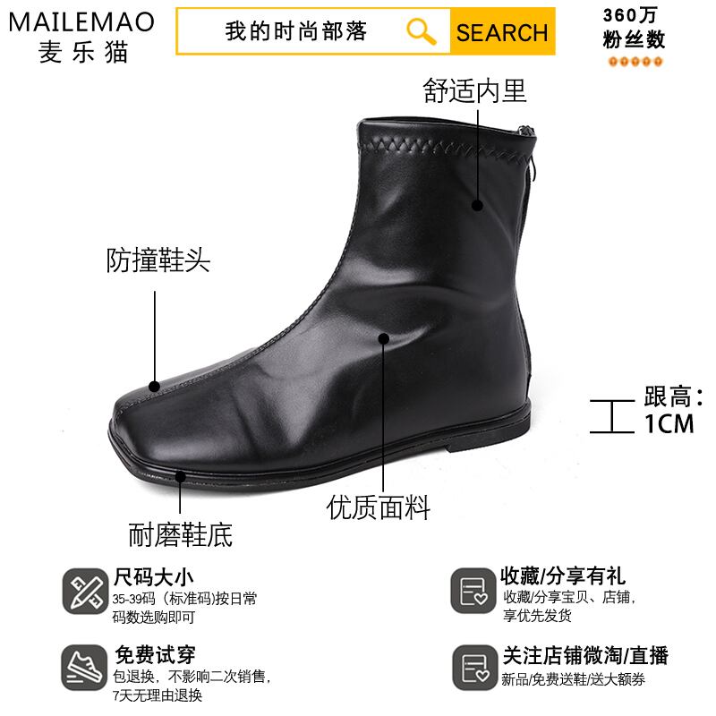 薄手ブーツオータムジッパースタイルスタンダードショート レトロ 靴 シューズ 秋物 スクウェア 部族の婦人靴62528618419