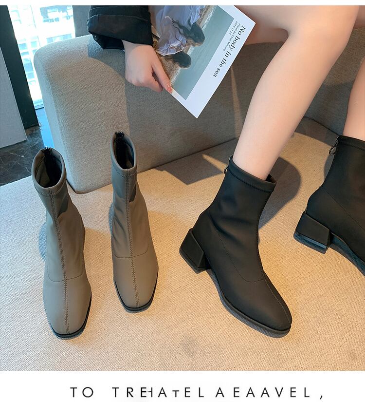 グレーショートブーツオータムレッド 靴 シューズ 秋物 スクウェア 部族の婦人靴65023623711