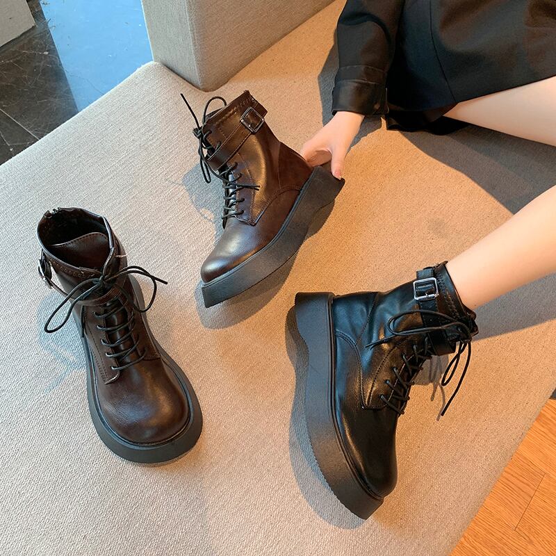 ショートブーツオータムレッドスタンダード レトロ レース 靴 シューズ ストリート 秋物 レースアップ 部族の婦人靴12254211659