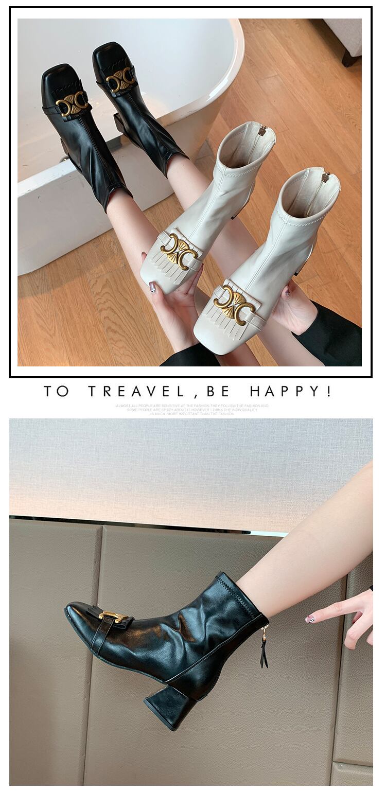 ショートブーツスプリングオータムバックジッパー薄手 靴 シューズ 春物 秋物 スクウェア 部族の婦人靴22265398193