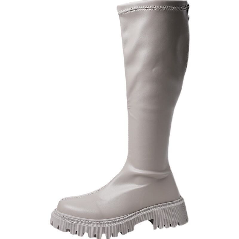 ブーツオータムレッドバックジッパーロンググレー 靴 シューズ 秋物 部族の婦人靴28989917509