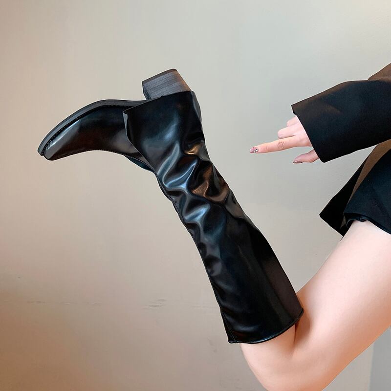 ロングブーツオータムレッドスタイルブラック 靴 シューズ 秋物 部族の婦人靴31056365822
