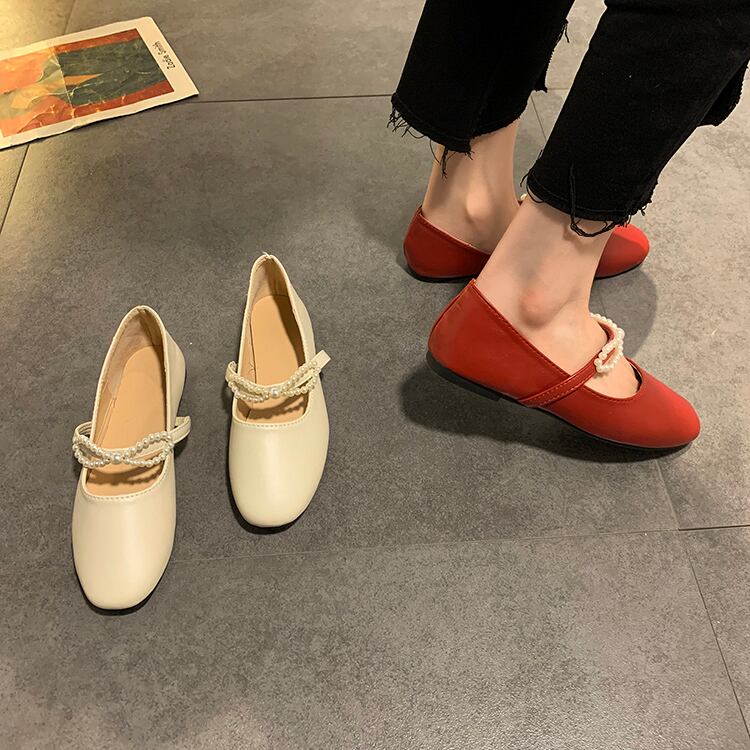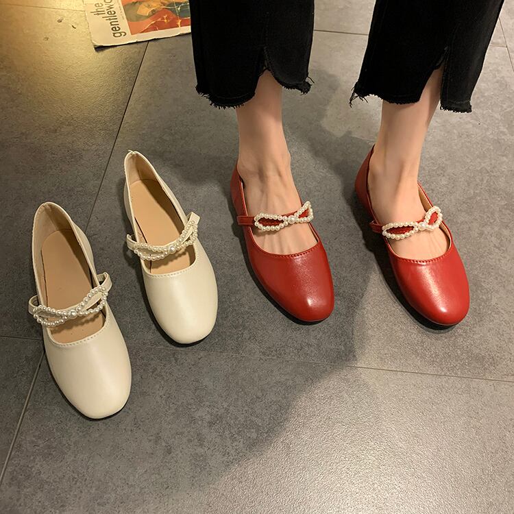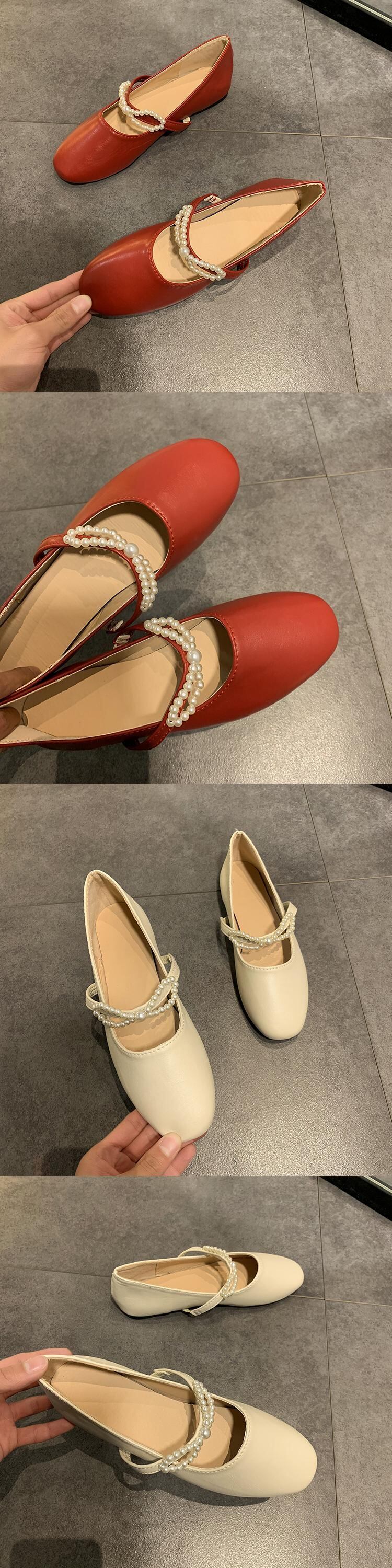 シングルレディーススプリングスタイルパール 靴 シューズ 春物 ラウンドトー 真珠 部族の婦人靴53511607130
