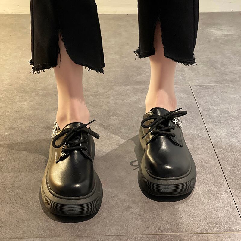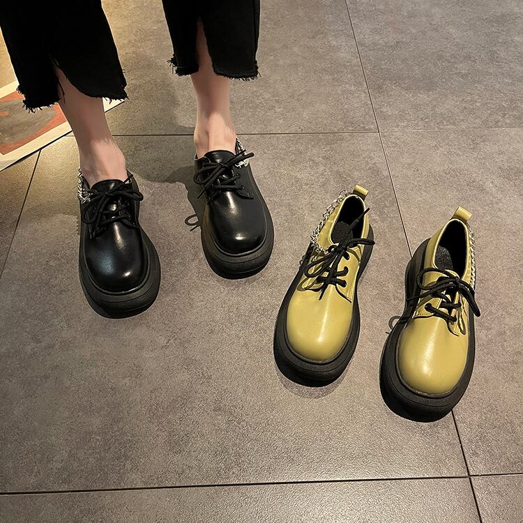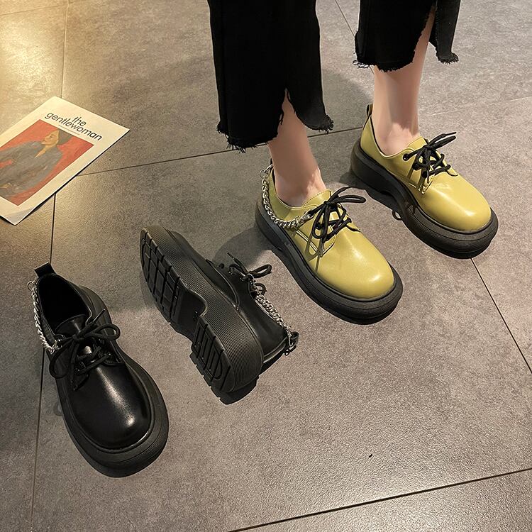 スタンダードレザースプリングオータムスタイルチェーン シングル 靴 シューズ レトロ レース 春物 秋物 レースアップ 部族の婦人靴711581607