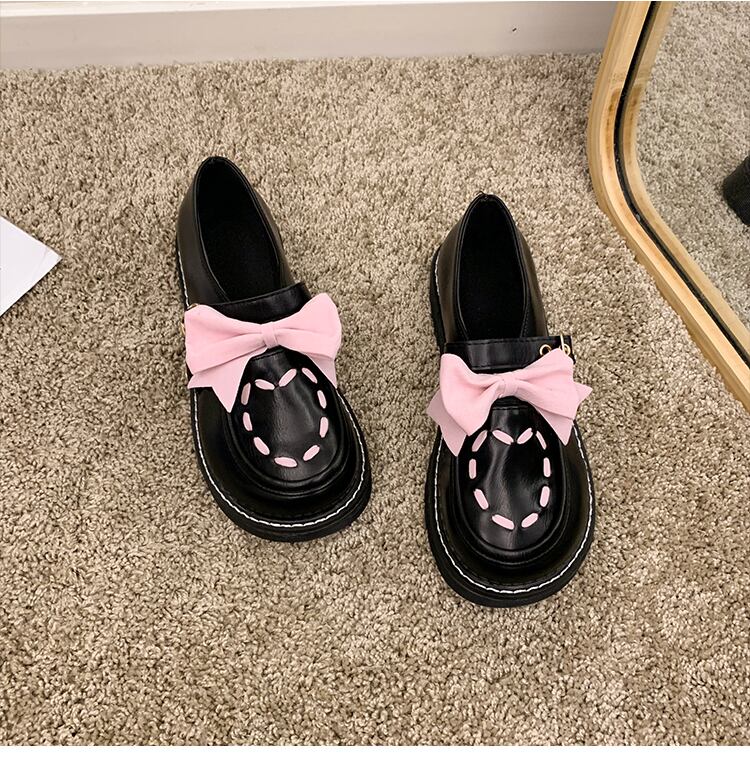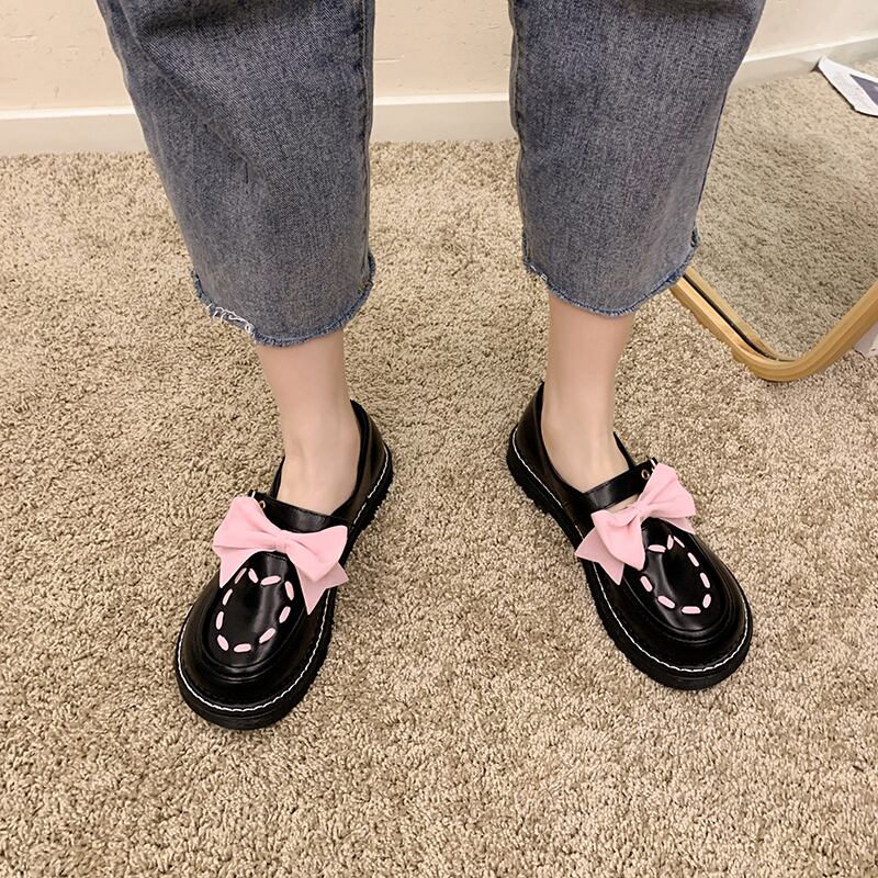 レザースプリングオータムリボンレッドスタンダードシングル 靴 シューズ レトロ 大人ガーリー スウィート キュート カジュアル 春物 秋物 部族の婦人靴286910603