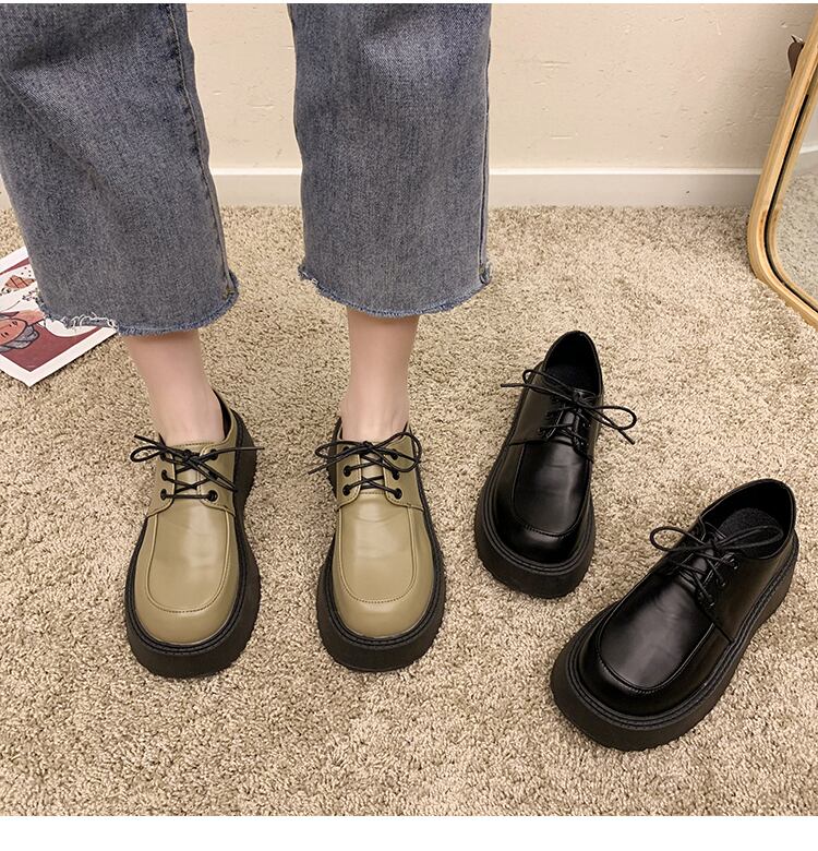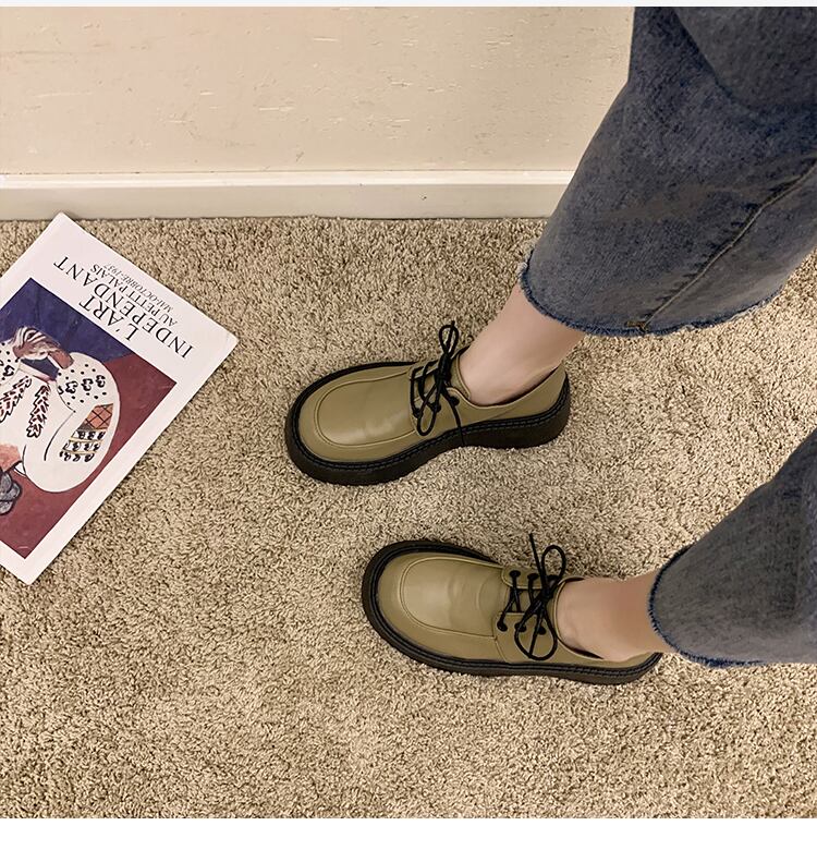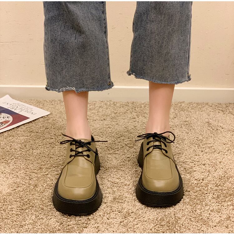 レッドスタンダードレザースプリングオータムスタイルシングル 靴 シューズ レトロ レース 春物 秋物 レースアップ 部族の婦人靴9249815129