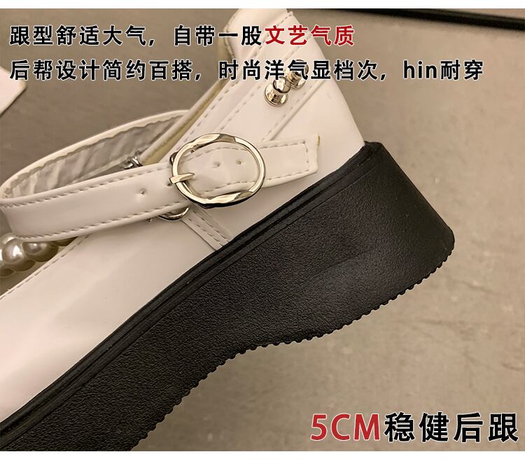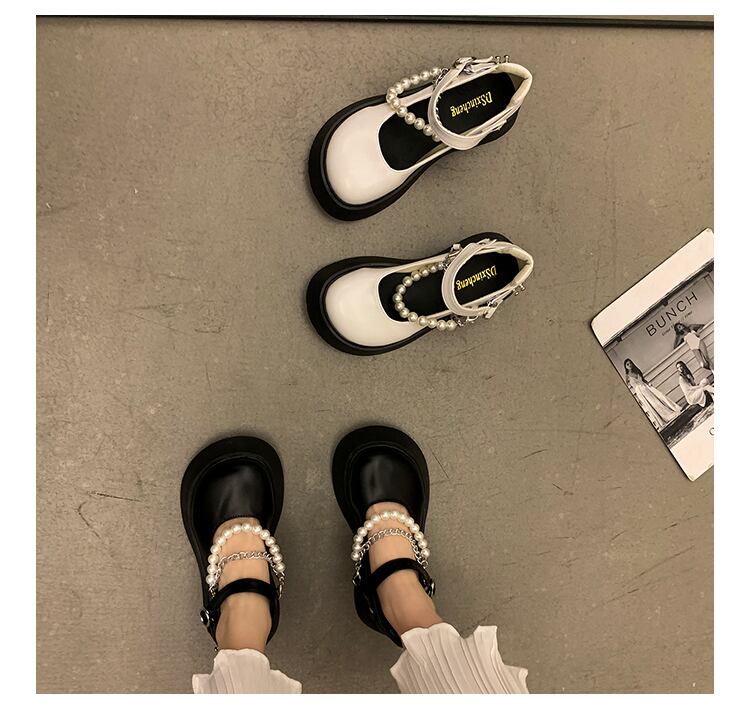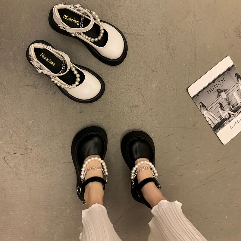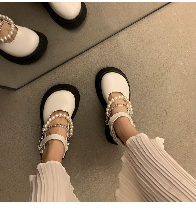 レザーオータムレッドパールチェーン シングル 靴 シューズ 秋物 真珠 部族の婦人靴65066181298
