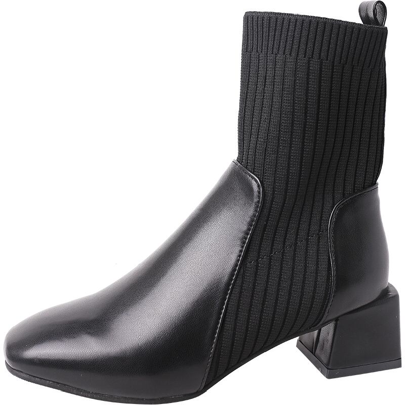 ニットブーツスプリングオータムレッドハイヒールアンクル 靴 シューズ 春物 秋物 スクウェア 部族の婦人靴58144655794